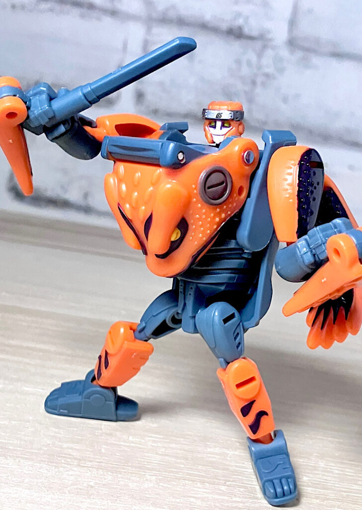 【ロボットモード】こちらはナルトの口寄せ獣であるガマ吉をモチーフとしたその名もガマキチ。カエルから変形したロボットで、まるでチビナルトのような忍者タイプ。