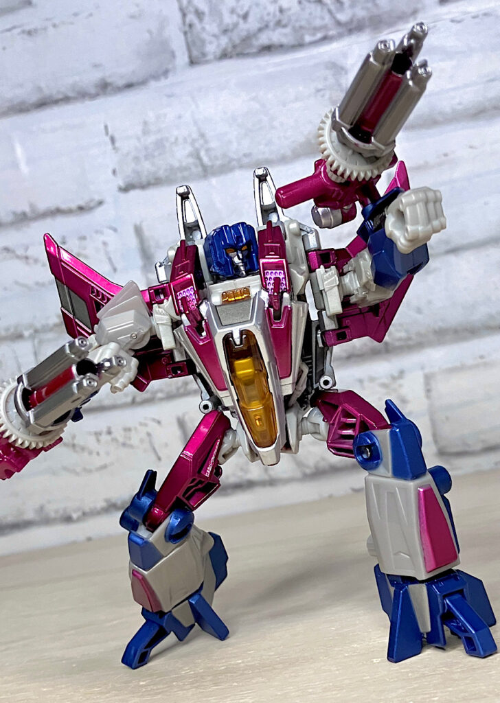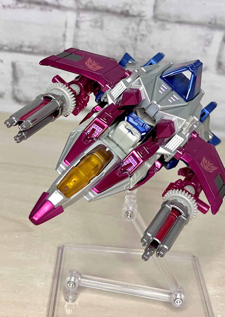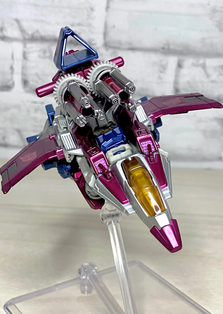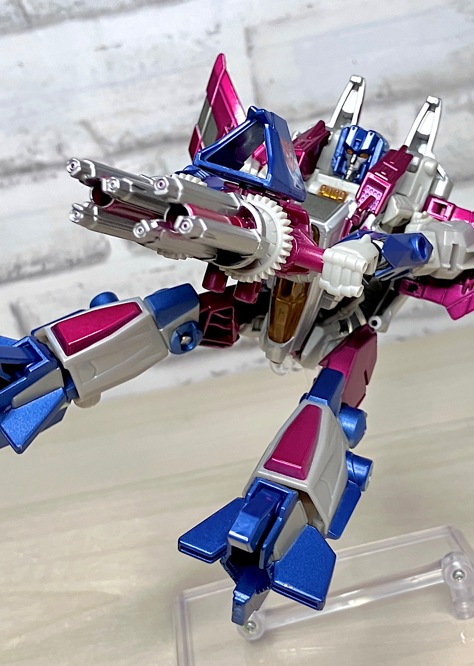 せっかくなので2013年のアイテムも紹介しましょう。いわゆるスリリング30期のFOC版スタースクリーム。コストカットがキツい時期ではありますが、パーツ数を抑えつつ安っぽさを感じさせないうまい設計です。