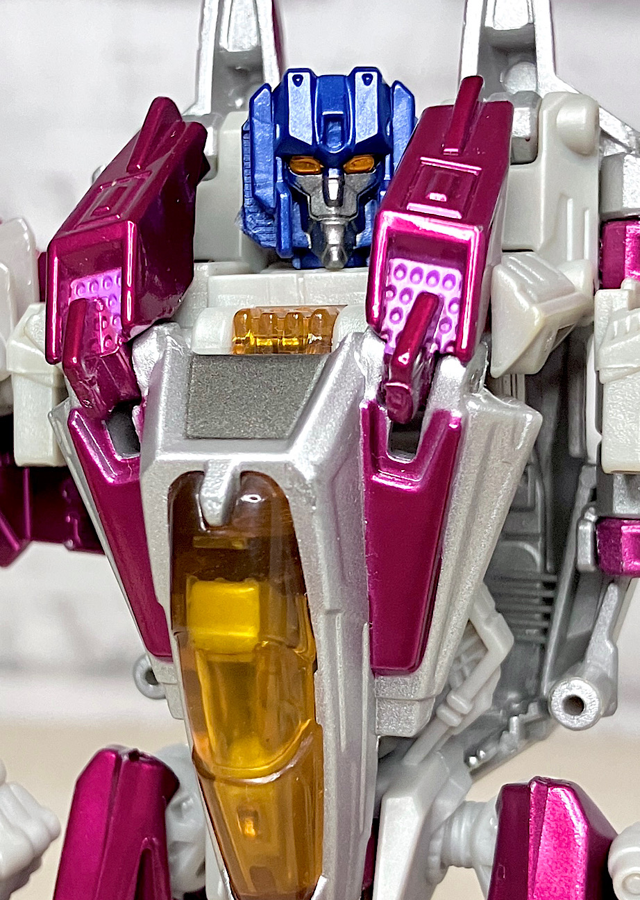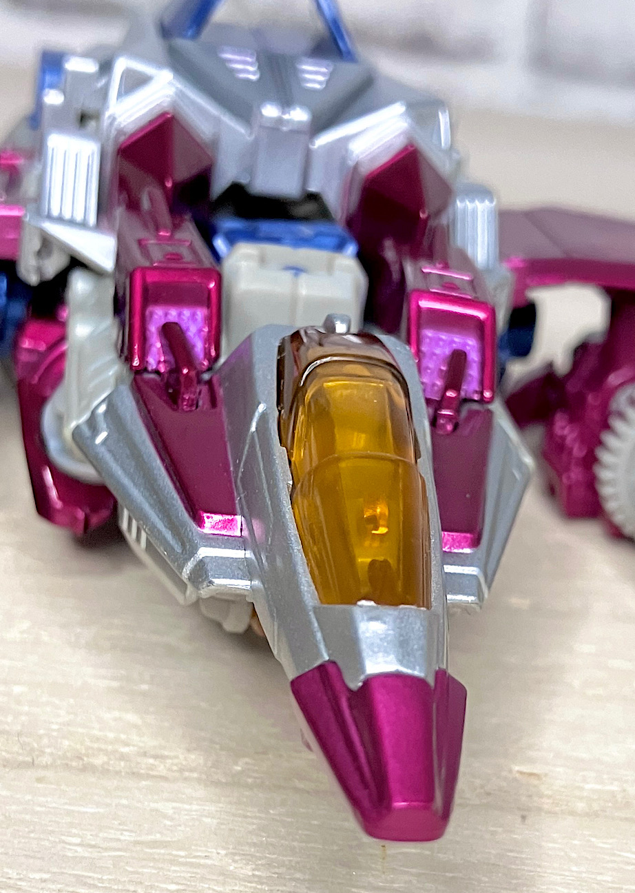 ゲーム内ではほとんど後ろ姿しか映らないのですが、それでもこのキャノピーは大きすぎて違和感がありますね。ロボモード優先でビークルにしわ寄せが来ている感じ。