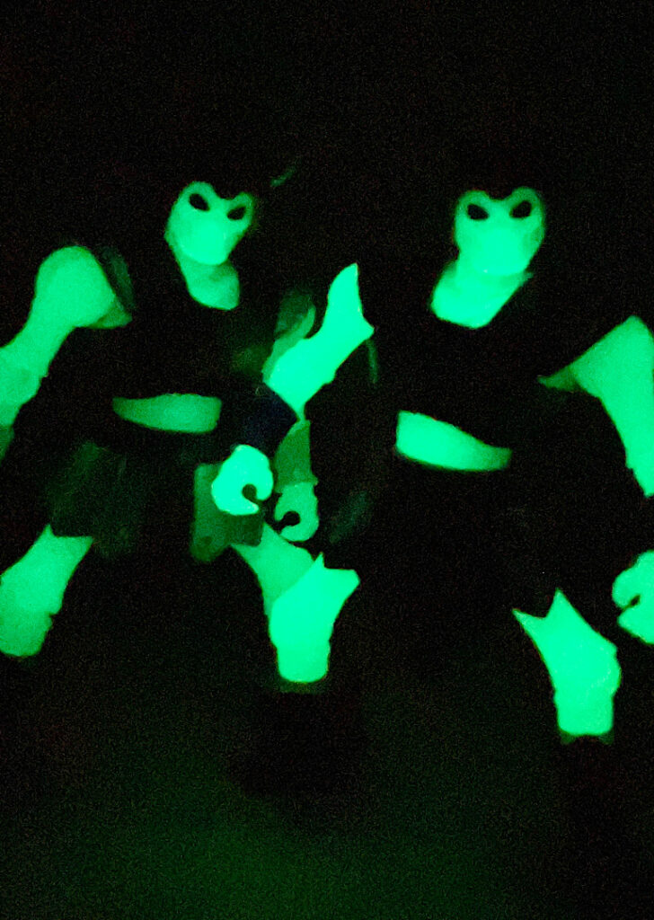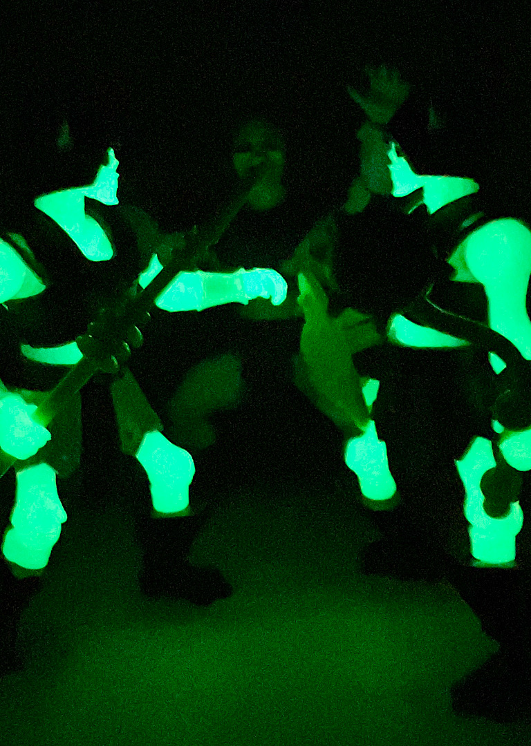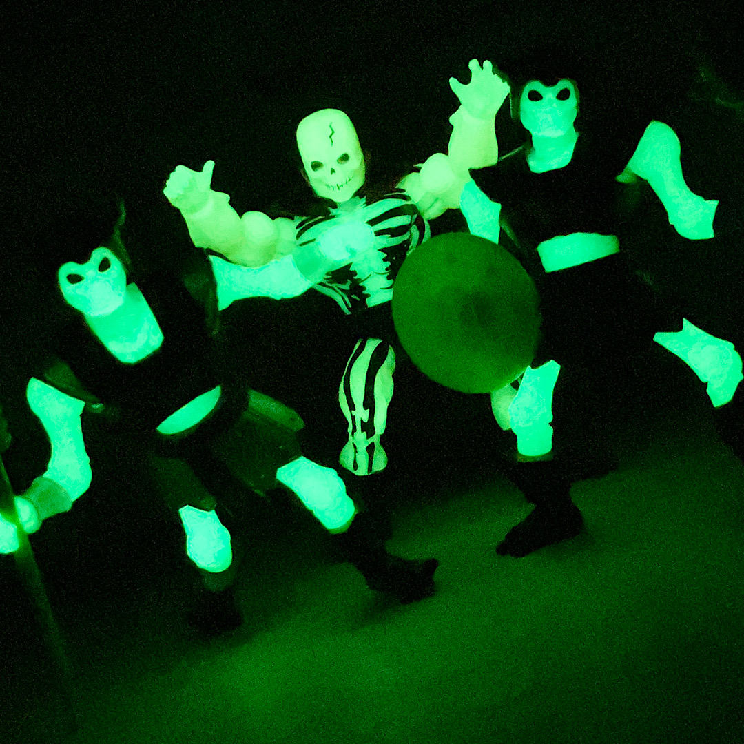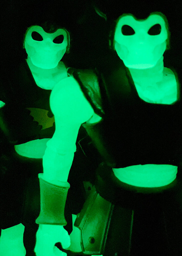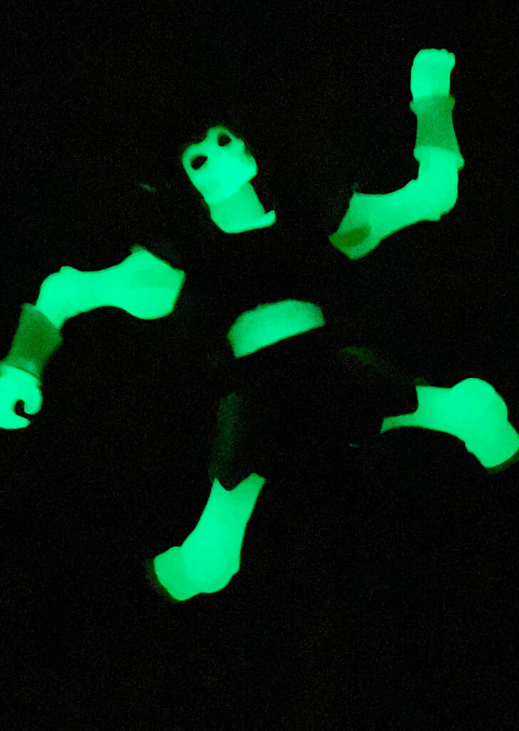 光るガイコツといえばスケアグロウ大先輩がいますね。コイツの手先として遊ぶのもいい感じ。