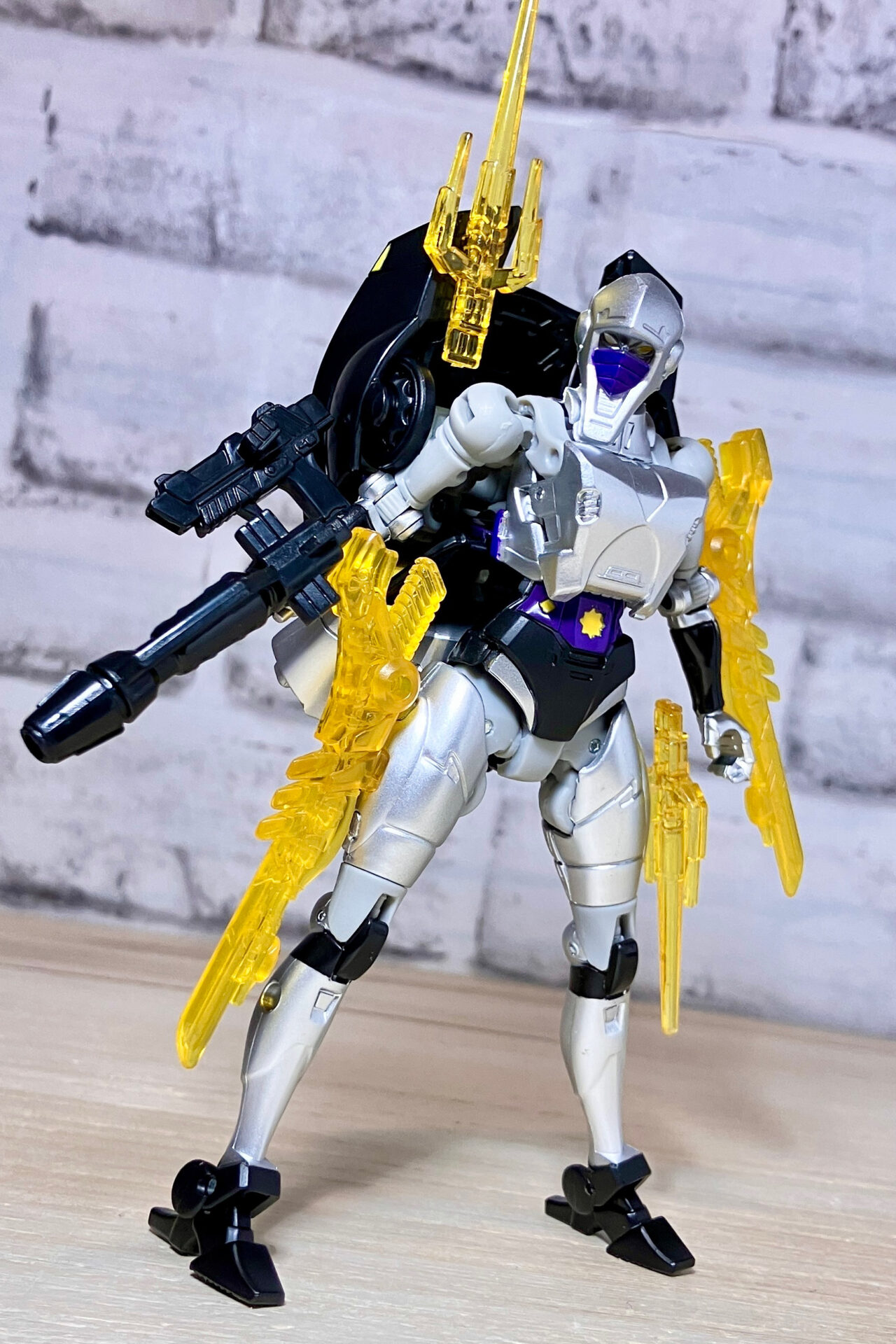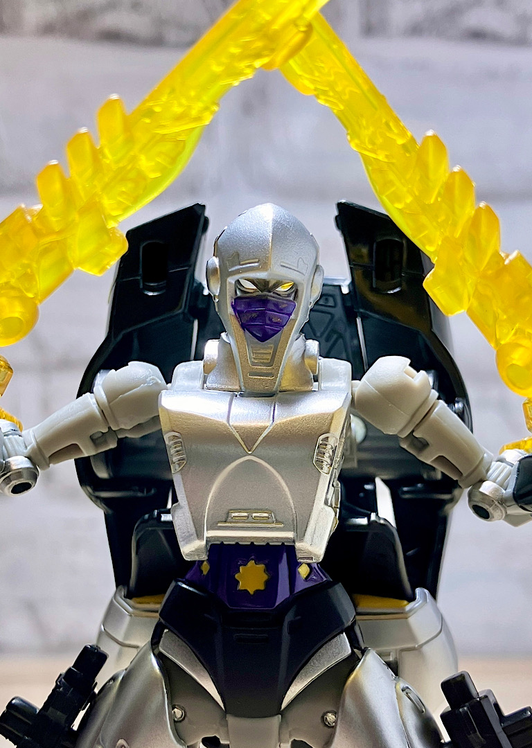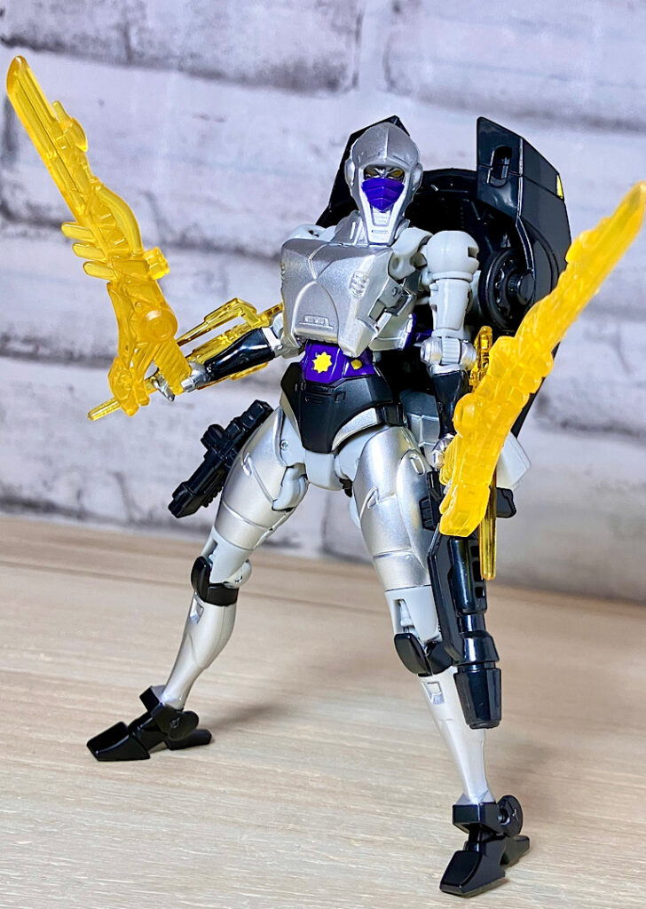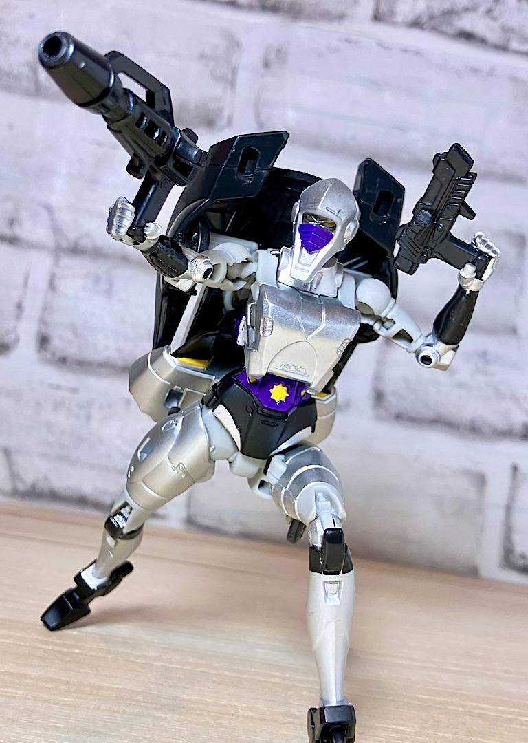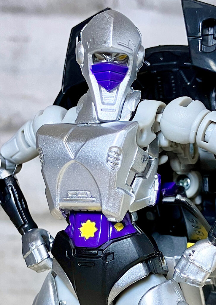 【ロボットモード】商品としてはシージクロミアのリデコ。女性型なので違和感はありません。シルバーの塗装やクリアパープルパーツが綺麗です。