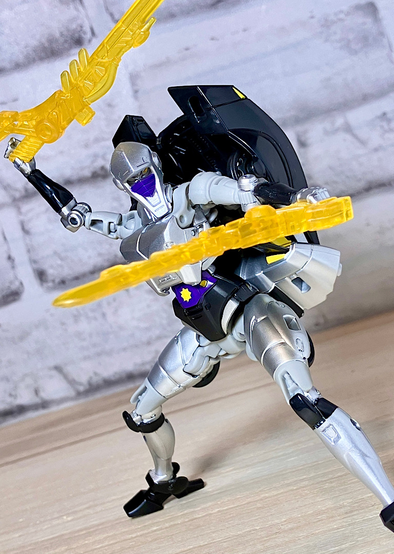 【付属品】武器を様々に組み合わせてバトルを再現しよう!というシージのコンセプトに基づき、この型には4パーツの武器が付属します。