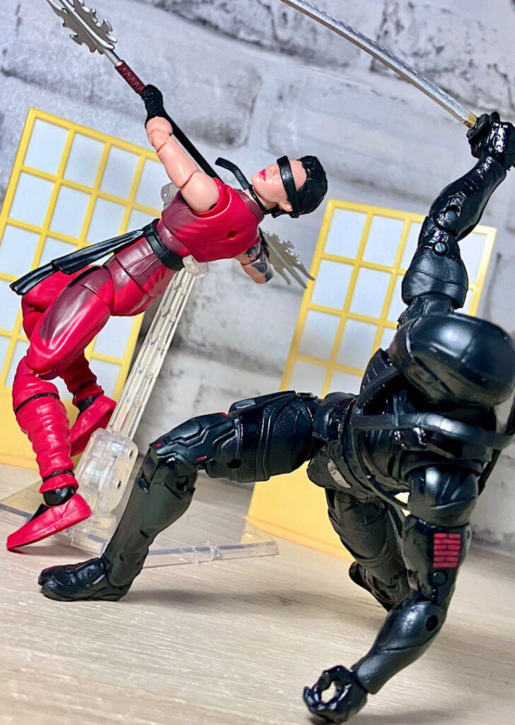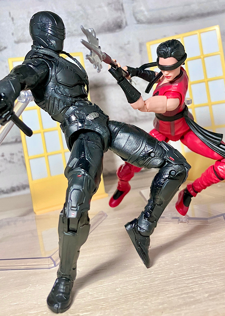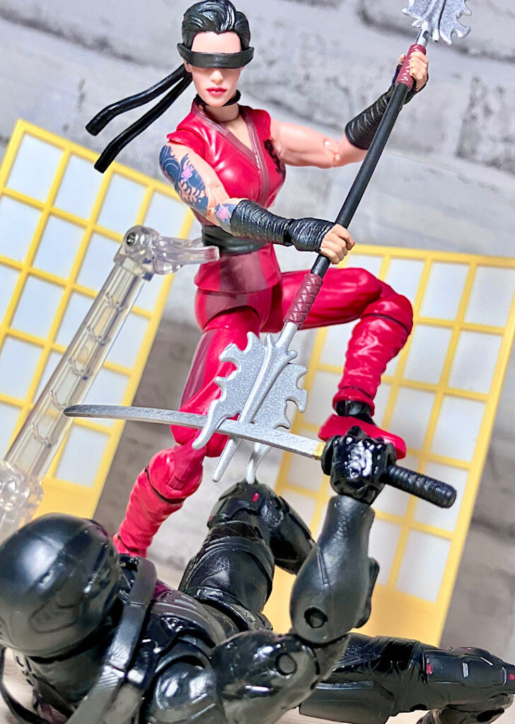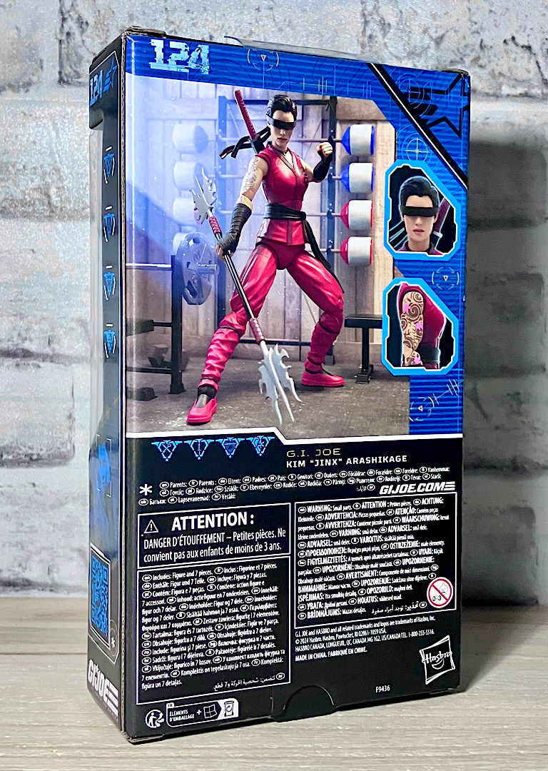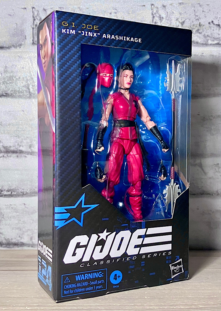 【パッケージ】まさかの6インチ展開で上々の人気を博しているクラシファイドシリーズ。ジンクスはG.I.ジョーのクノイチで、スネークアイズに次ぐ忍びのスキルを身につけています。アラシカゲの名のとおり、スネークアイズやストームシャドーとは同じ忍者軍団の出身。作品によってはストームシャドーのいとこという設定もあるようです。サンボウアニメでは「ムービー」に登場し、目隠し状態での入団テストシーンが有名。これは実写映画「バック2リベンジ」でもオマージュされました。