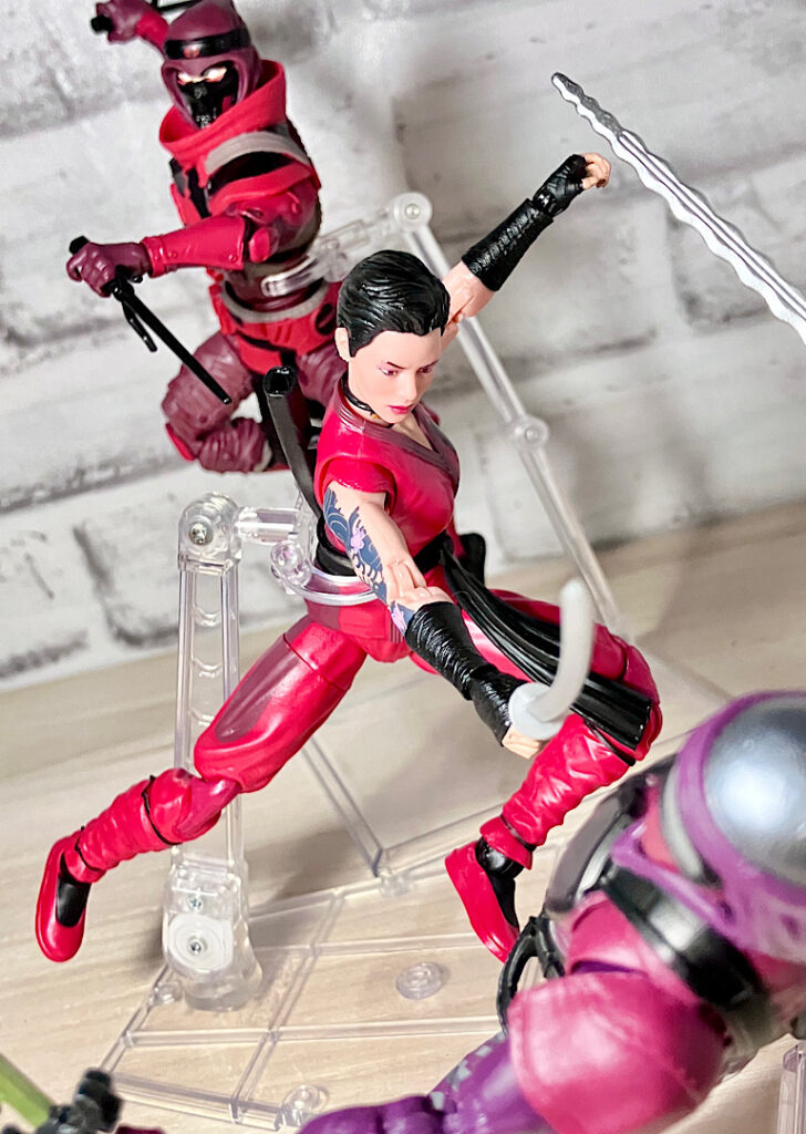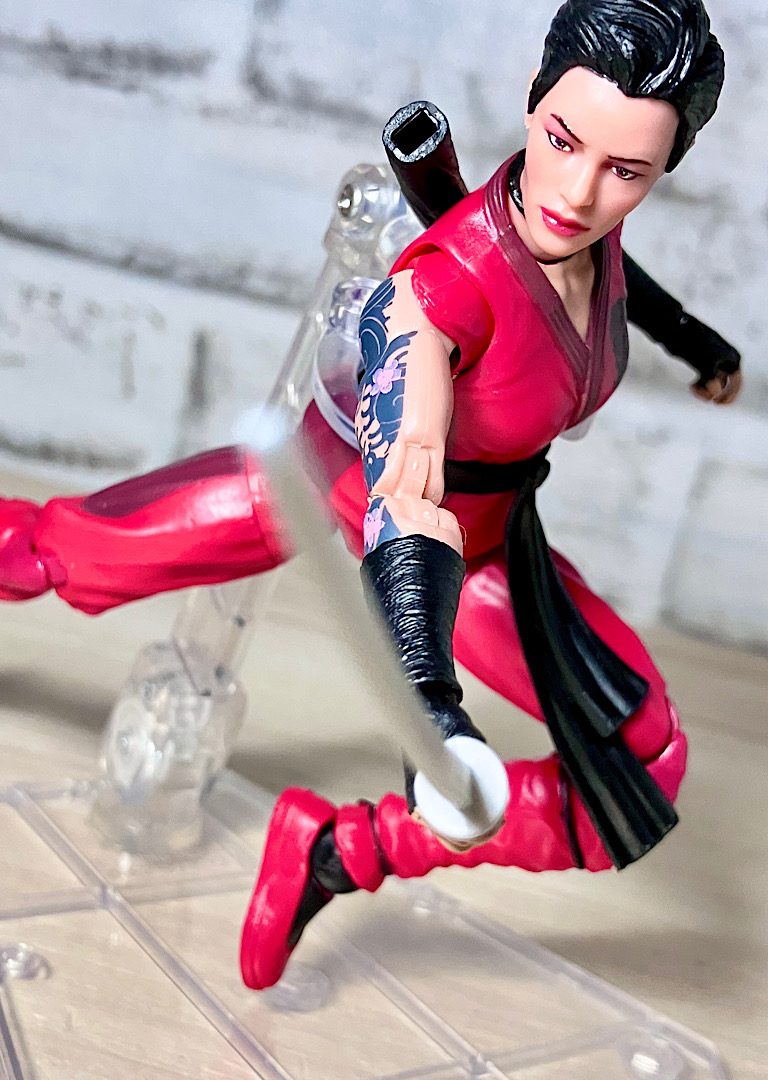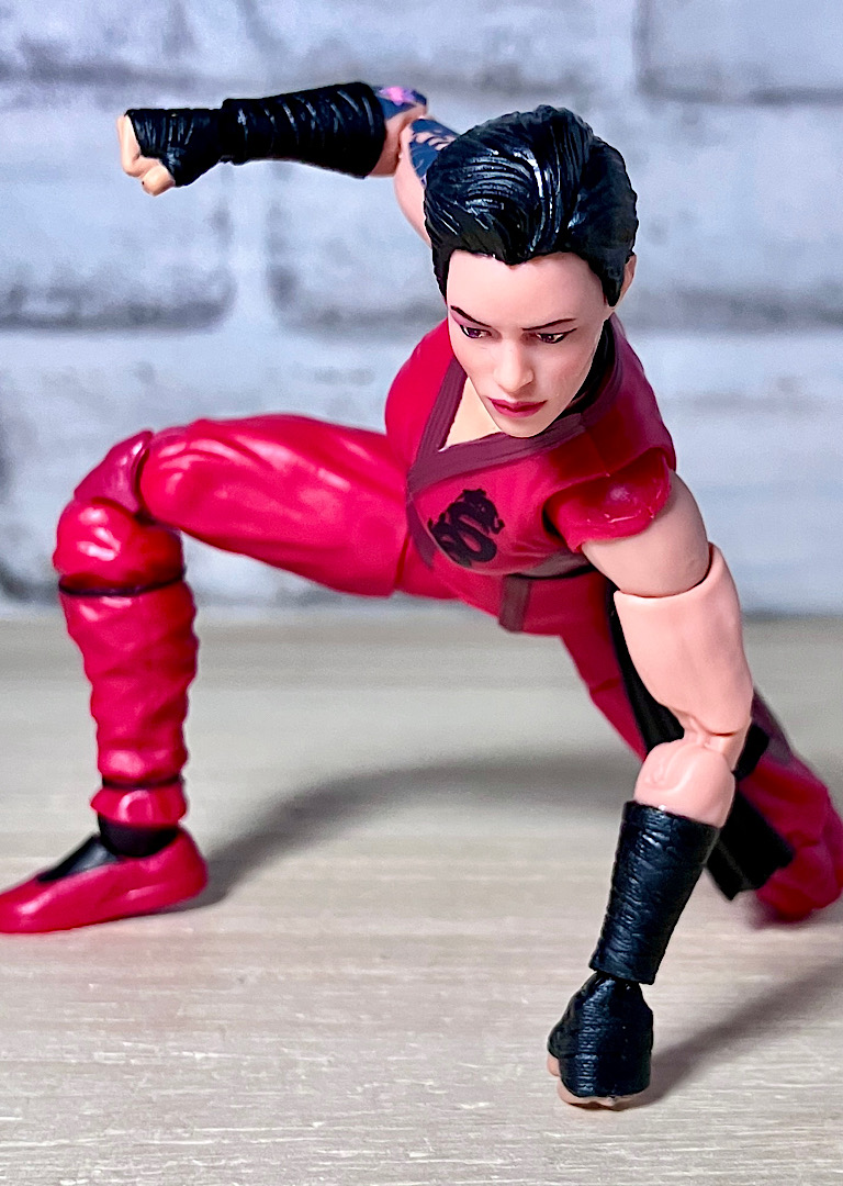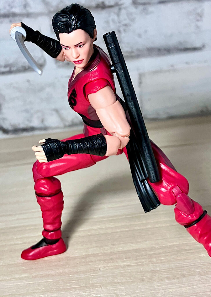 【可動】ハズブロの6インチフィギュアはマーベルレジェンドなどで実績があり、可動域は特に文句ありません。ただ、女性素体は腹の前後可動が無いのが寂しいかな。