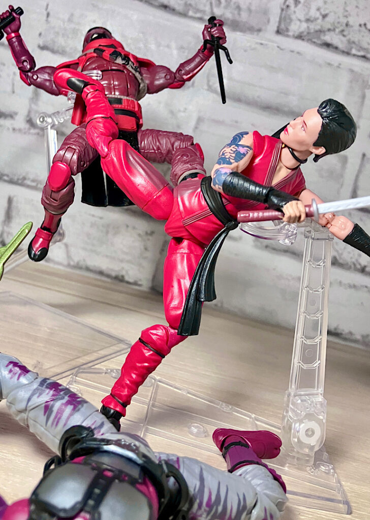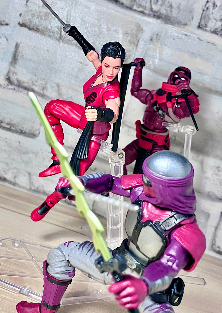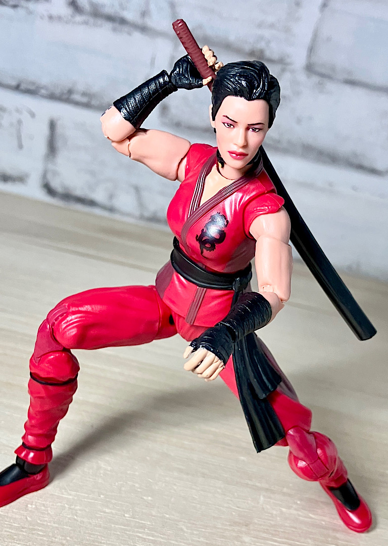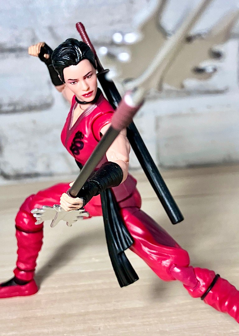 【可動】ハズブロの6インチフィギュアはマーベルレジェンドなどで実績があり、可動域は特に文句ありません。ただ、女性素体は腹の前後可動が無いのが寂しいかな。