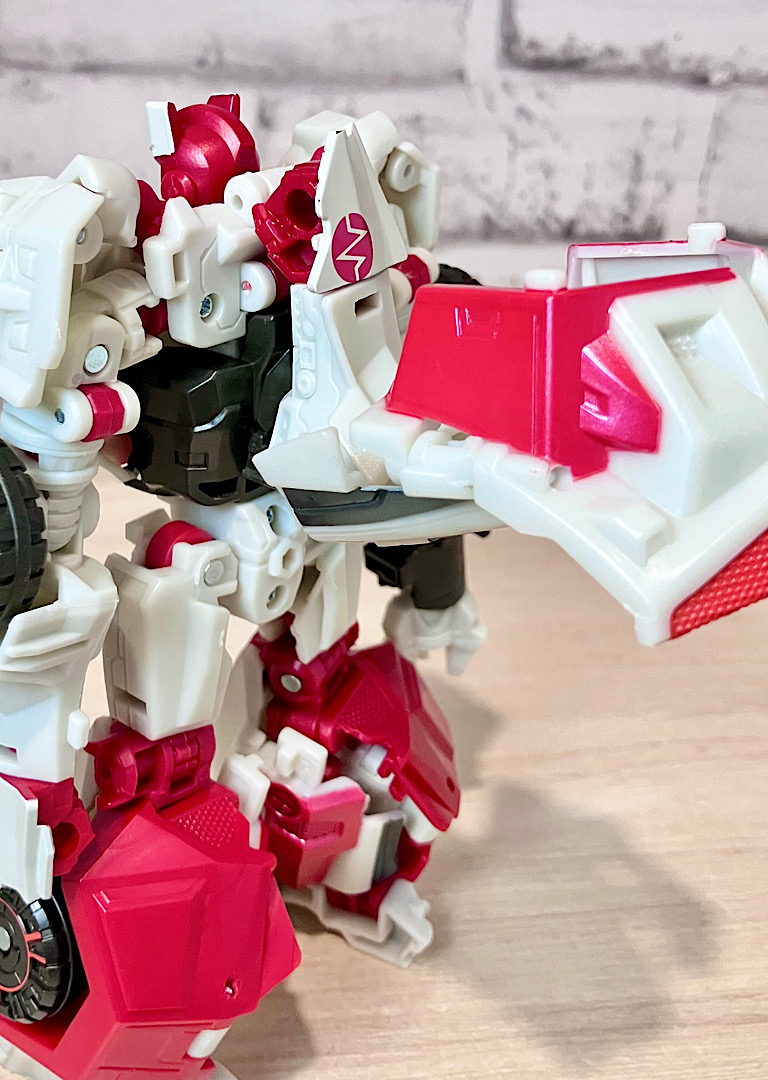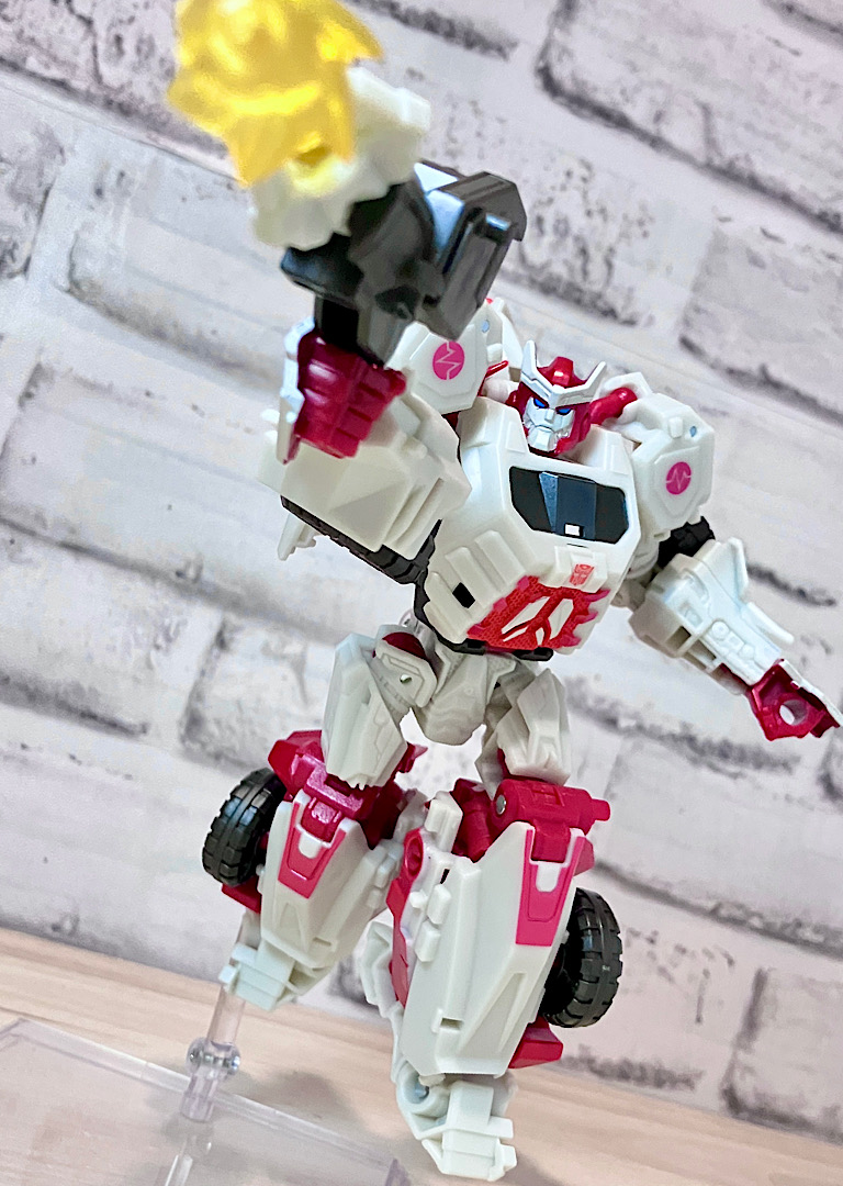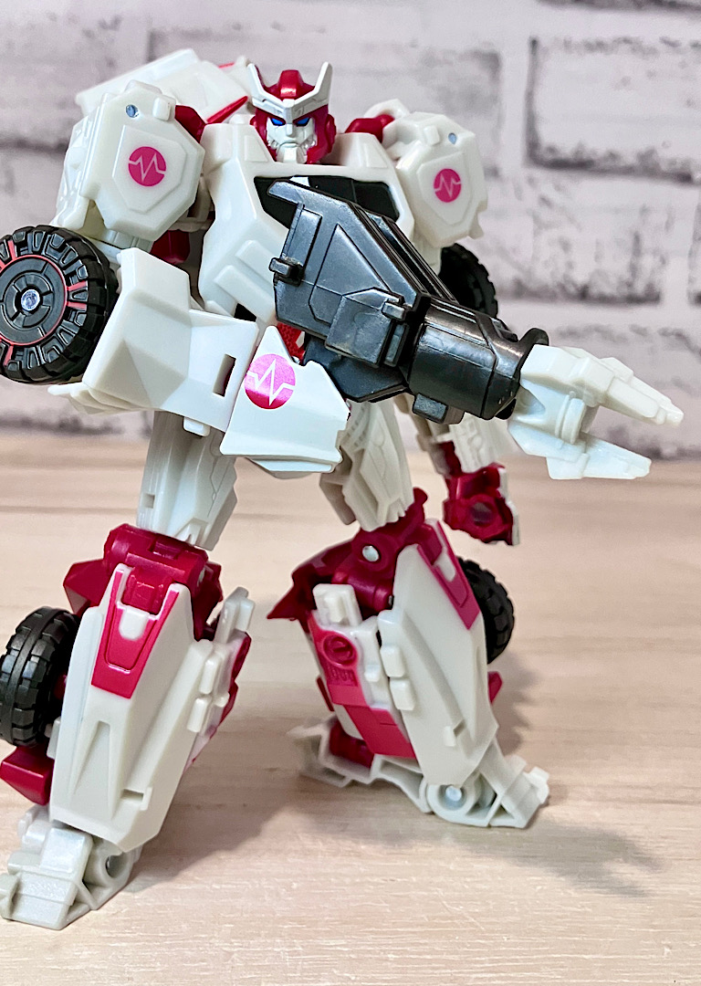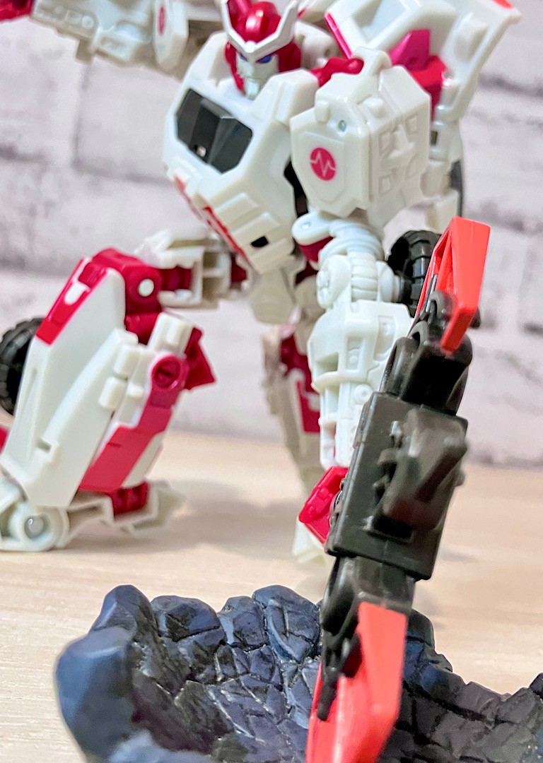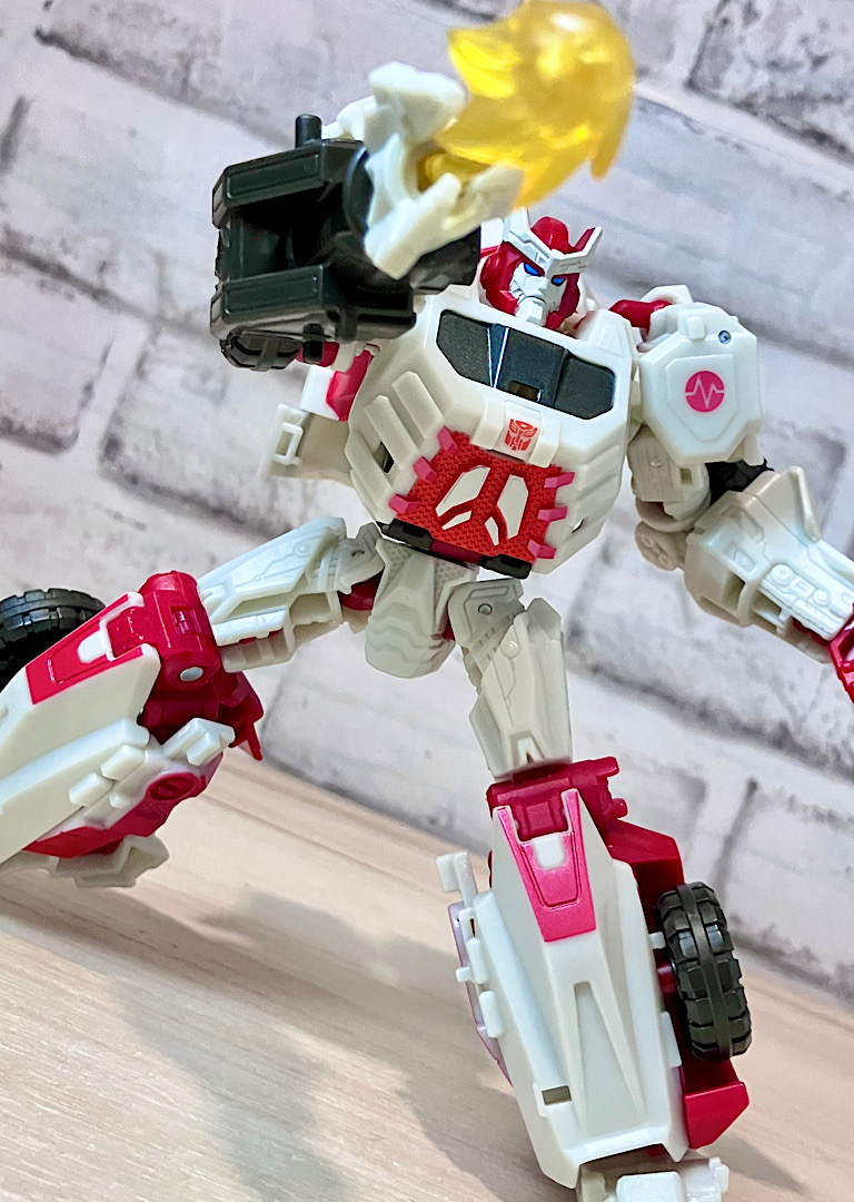 なお、シリーズギミックの右腕換装も健在。右腕をはずしてEnergon Repair Rayや他の商品に付いている武器をアタッチメント的に付けることができます。