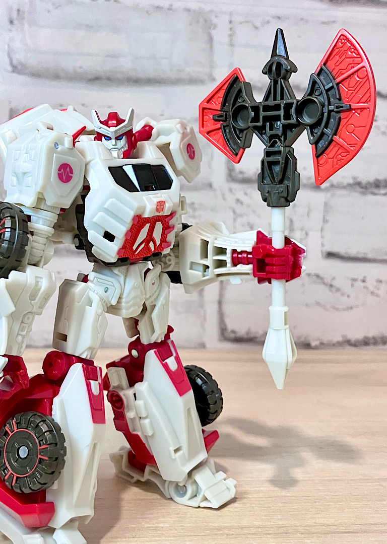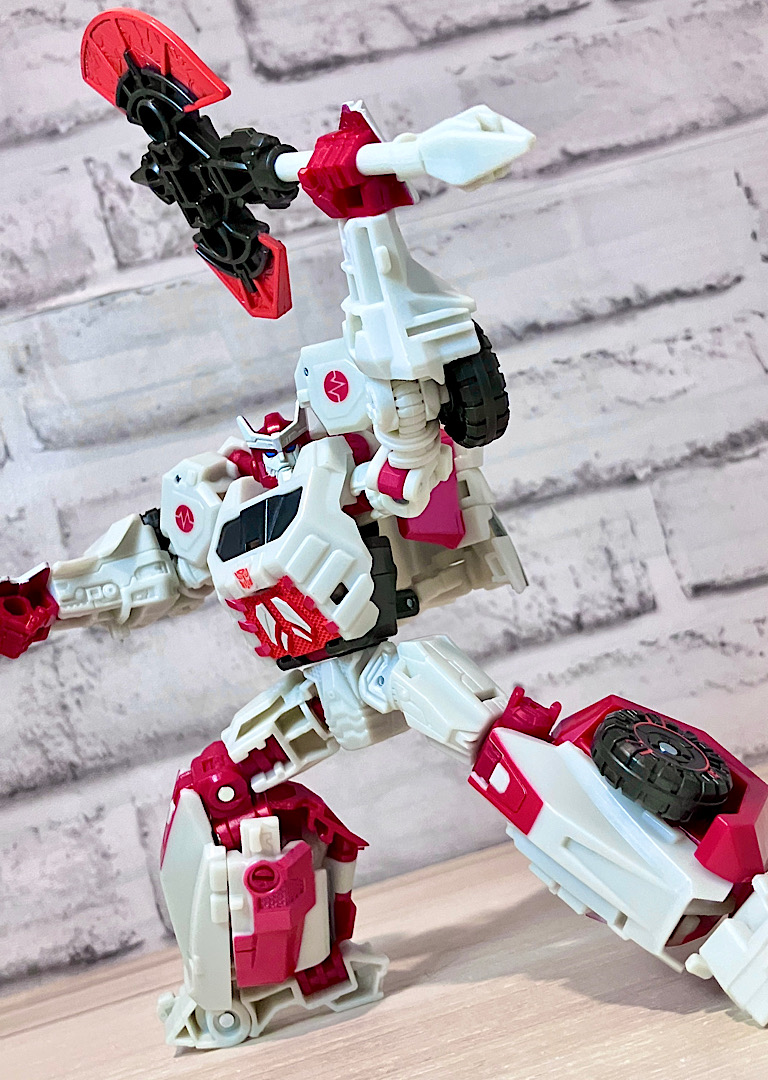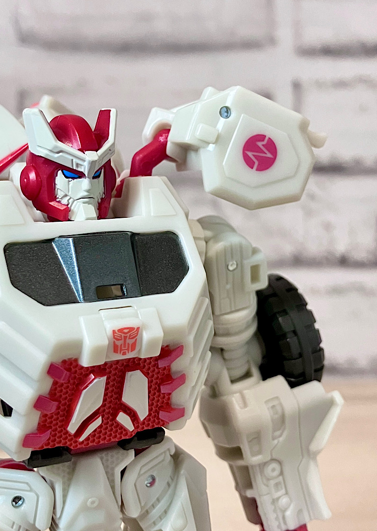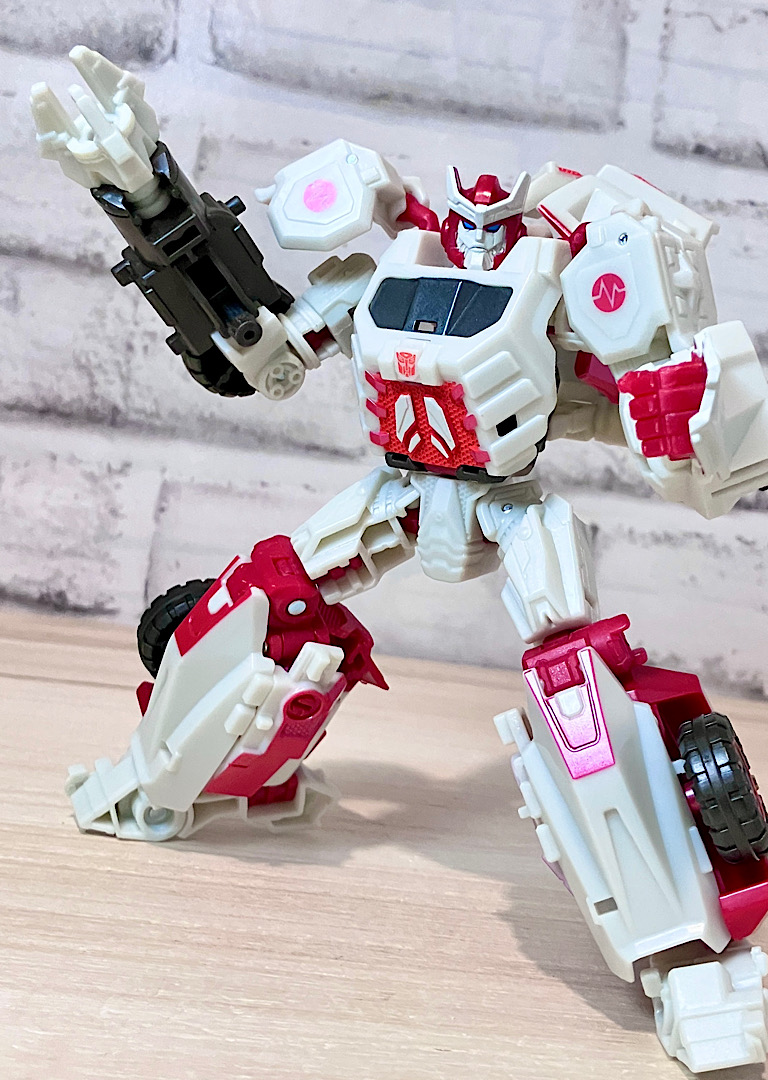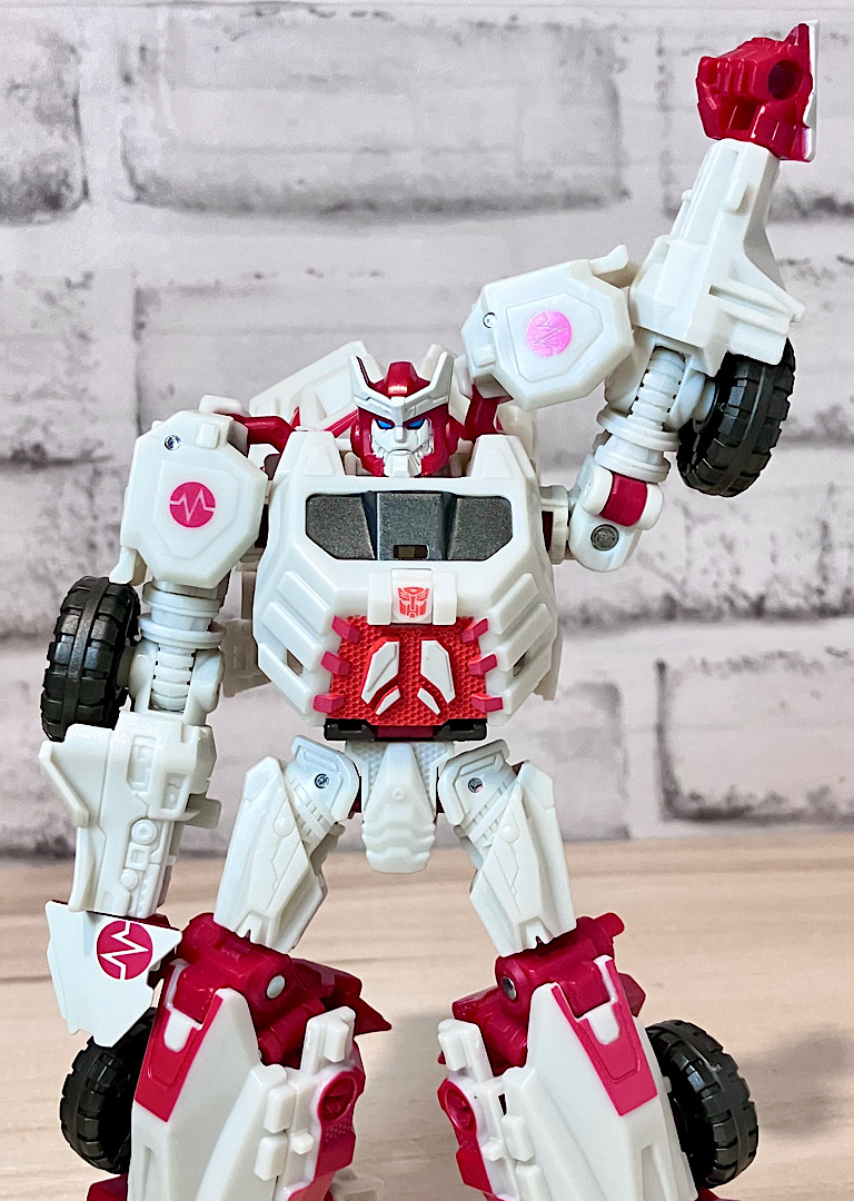 なお、シリーズギミックの右腕換装も健在。右腕をはずしてEnergon Repair Rayや他の商品に付いている武器をアタッチメント的に付けることができます。