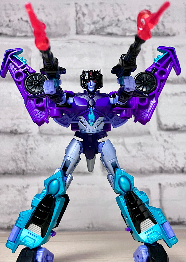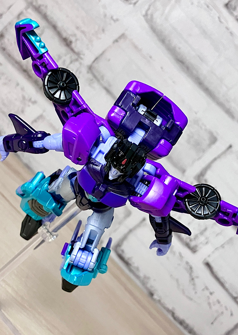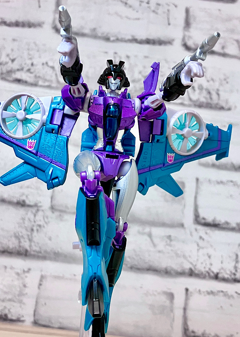 【ロボットモード】レガシーUNウインドブレードのリデコ。2015年にはレジェンズにてやはりウインドブレードリデコで商品化されたので違和感はありません。女性型の航空TFとしてやや華奢な体型で造形されています。