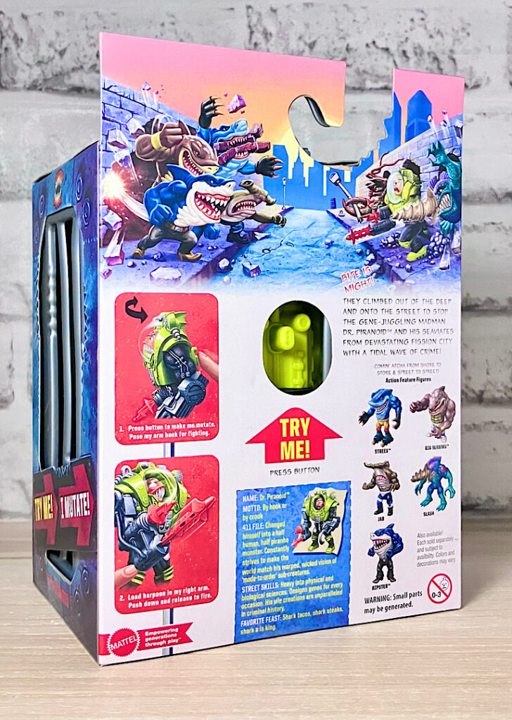 そしてそんなストリートシャークスが30年の時を経て本格リメイクされました。商品パッケージは当時品を完全再現した90sレトロ仕様となっております。ちなみにいつもはキャッチフレーズが「I BITE!」なんですが、ピラノイドは「I MUTATE!」になってますw