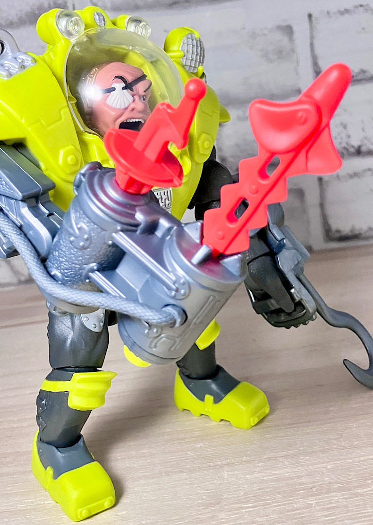 【フロント&リア】ストリートシャークスの宿敵で、本名ルーサー•パラダイム。世界中の人間をミュータントに変えようと実験を繰り返し、ボルトン兄弟をサメのミュータント(つまりストリートシャークス)に変えてしまいました。その一方、自らは予期せぬ実験の失敗でピラニアのDNAを取り込んでしまい、興奮すると変身してしまう体質になってしまいました。