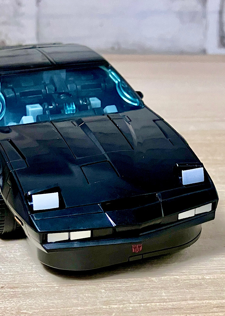 電飾ギミックのスイッチはボンネットに。ライトが光り、ブロロロ…というエンジン音や原語セリフをしゃべります。セリフはもちろんナイト2000の人工知能K.I.T.T.のもの。パターンはいくつかあり、押すたびに順番に鳴ってループします。