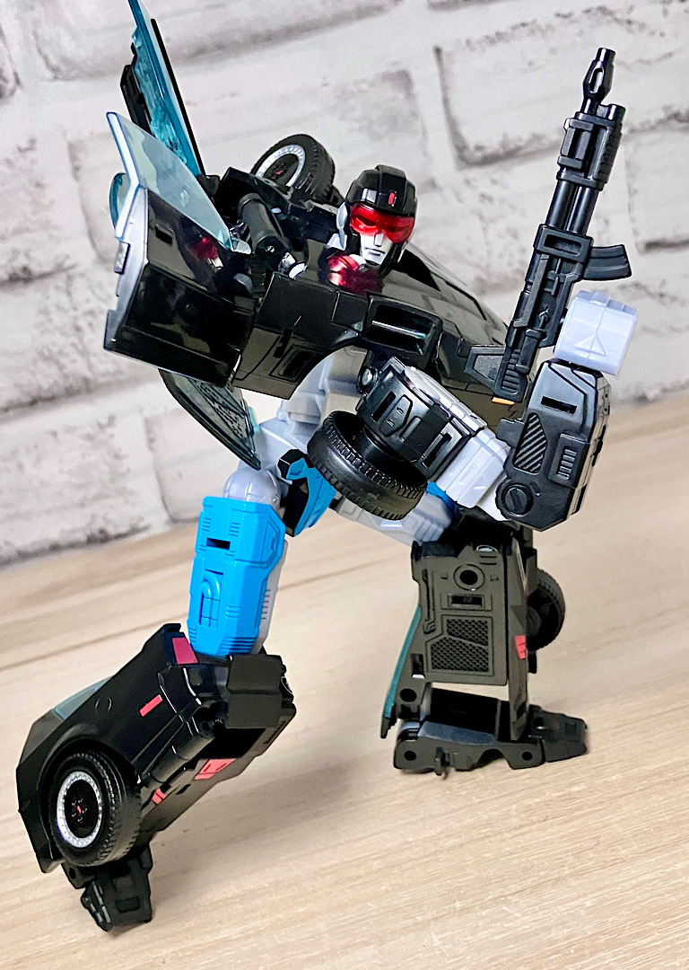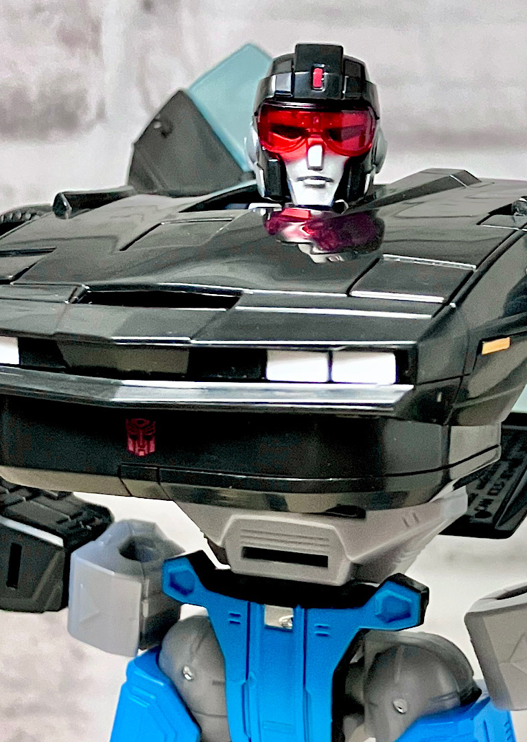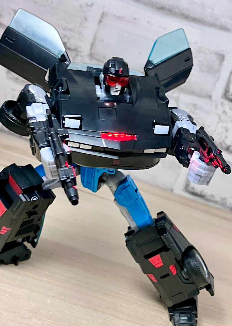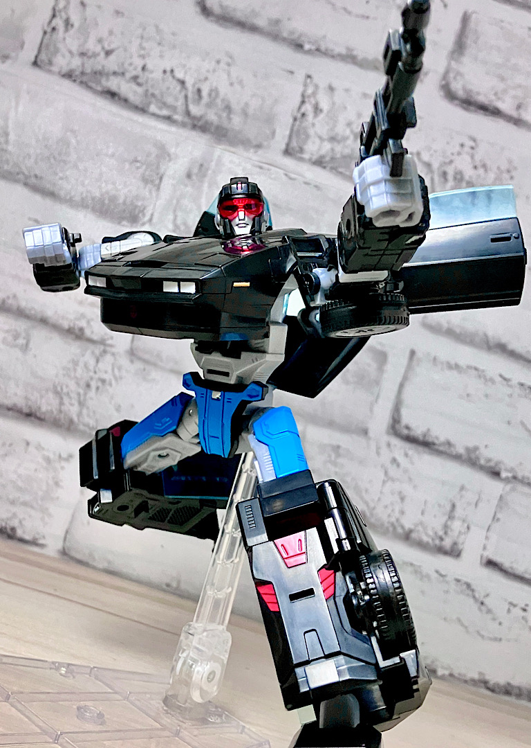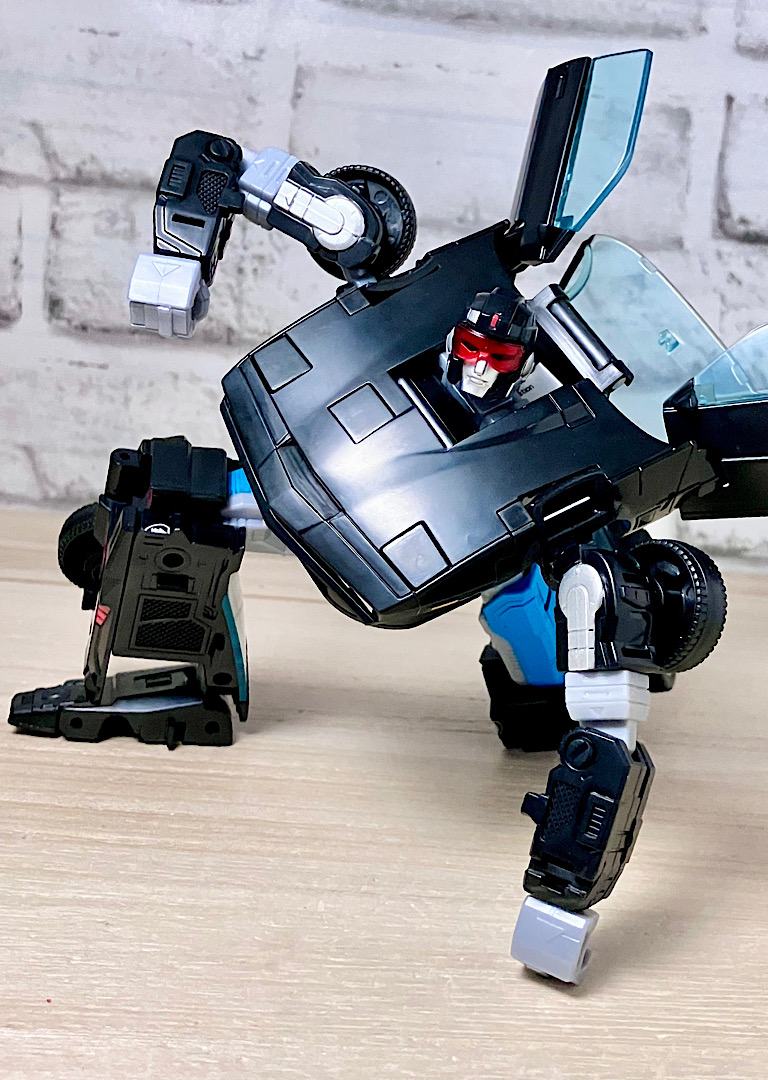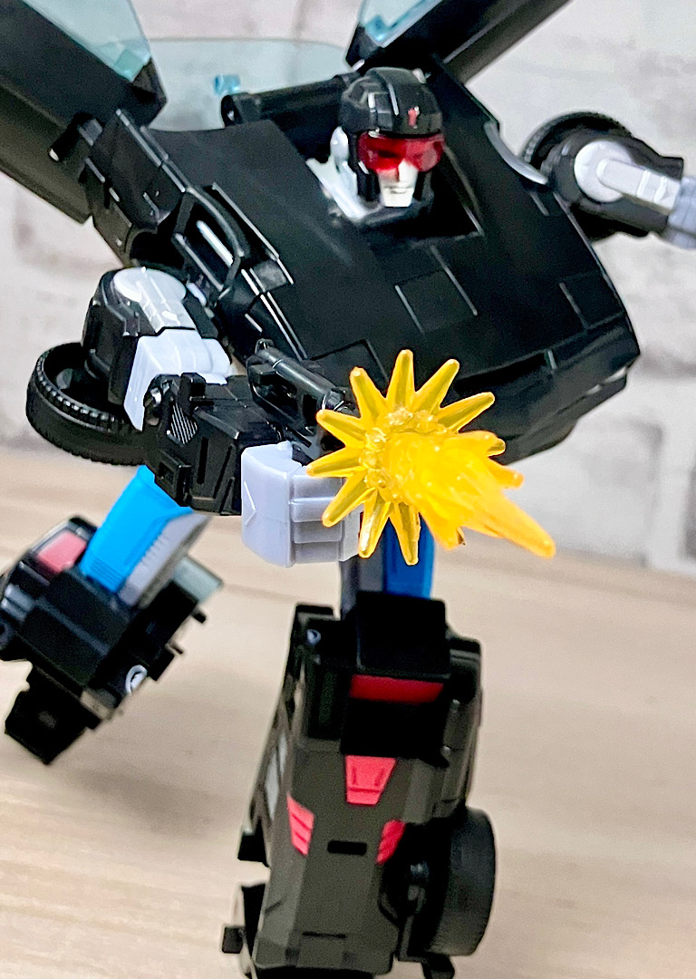 【ビークルモード】ゼネラルモータース・ポンティアックファイヤーバードトランザムカスタムに変形。要するに「ナイト2000」です。もちろんライセンス有りなので、変形するとは思えないくらいの素晴らしい出来。80sのスーパーカー感全開です。なお大きさはボイジャー〜リーダーくらい。