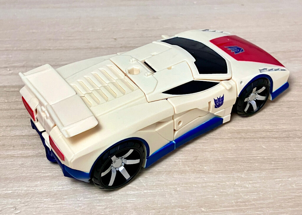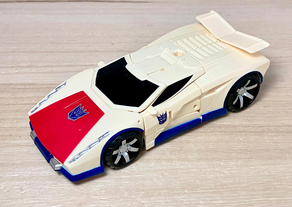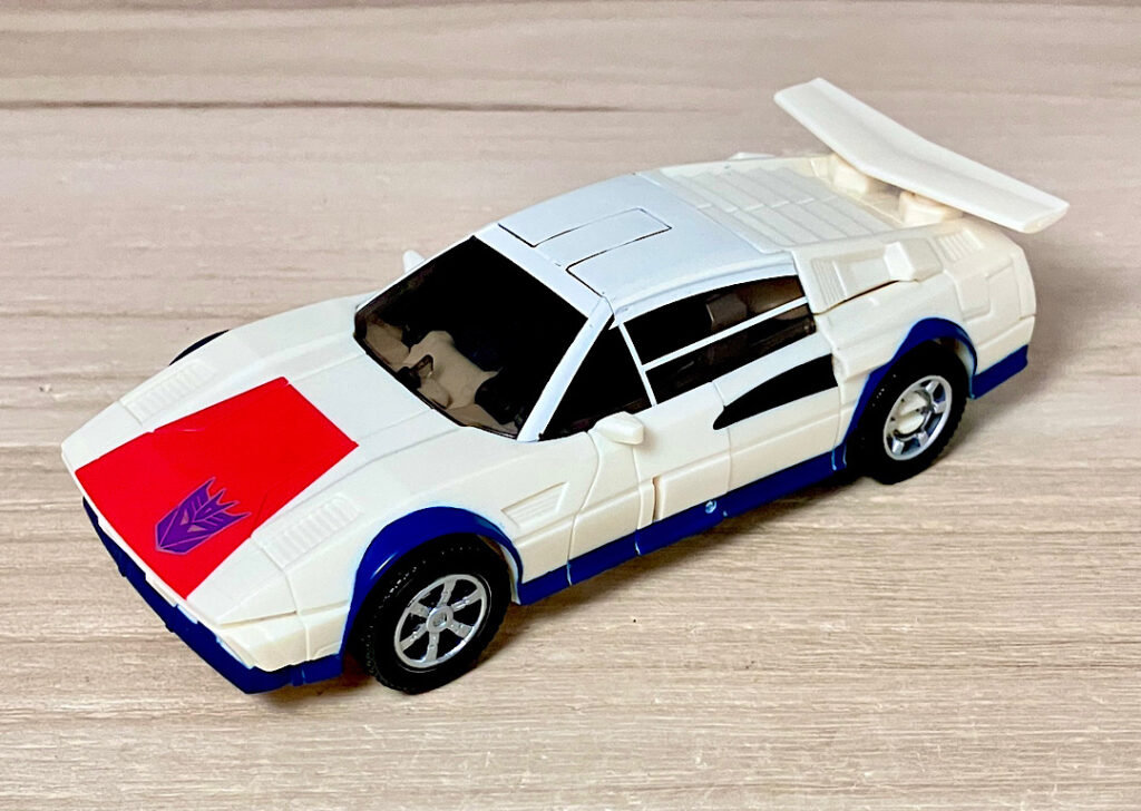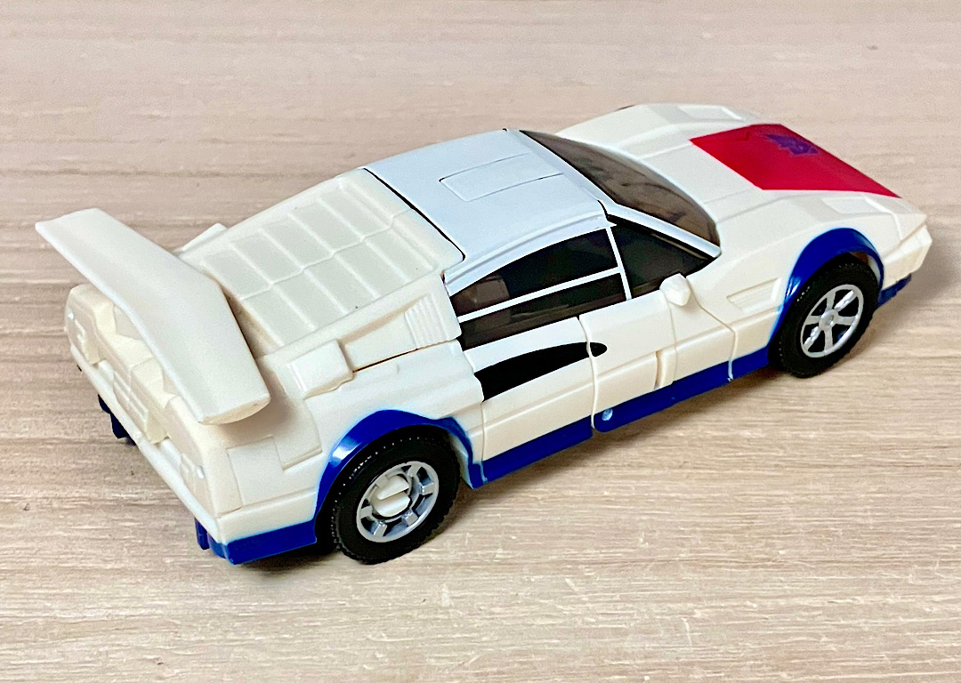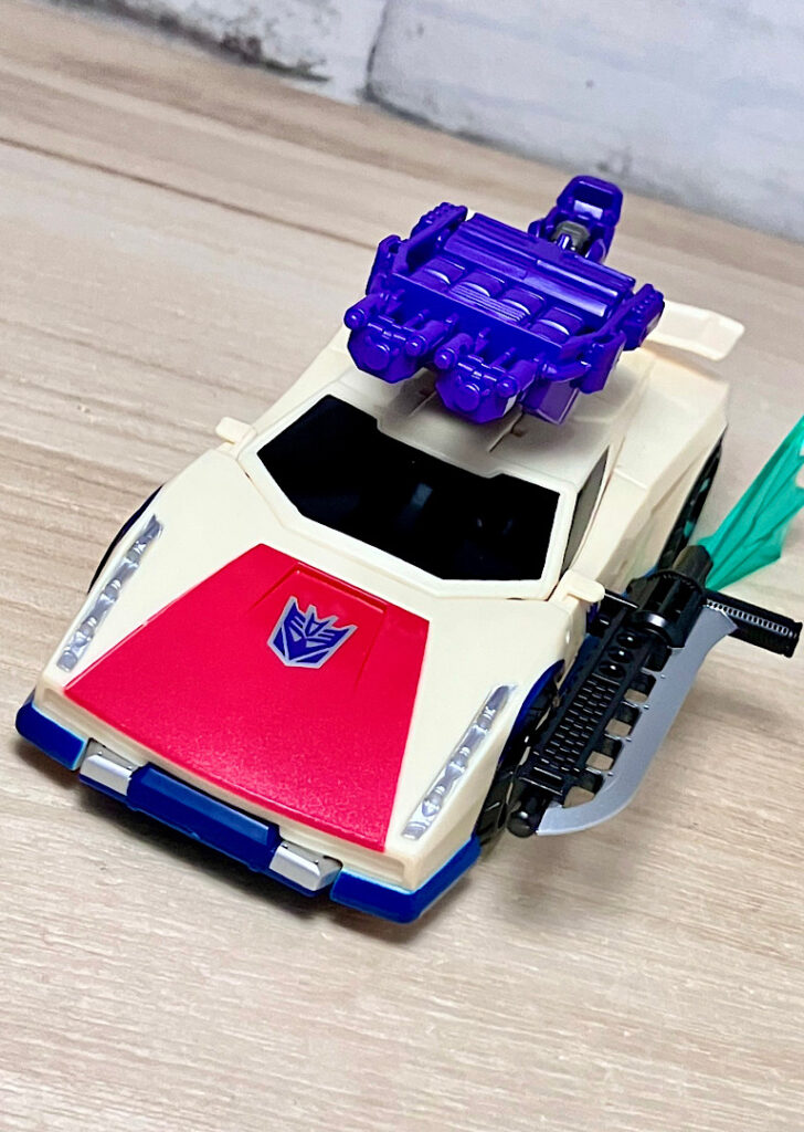 【ビークルモード】スポーツカーに変形。ブレークダウンはレガシースタンティコンの中でも最後の商品だったのですが、なぜかワイルドライダーの微リデコで済まされてしまいました。なのでフェラーリのようなカウンタックのような中途半端なデザインに。