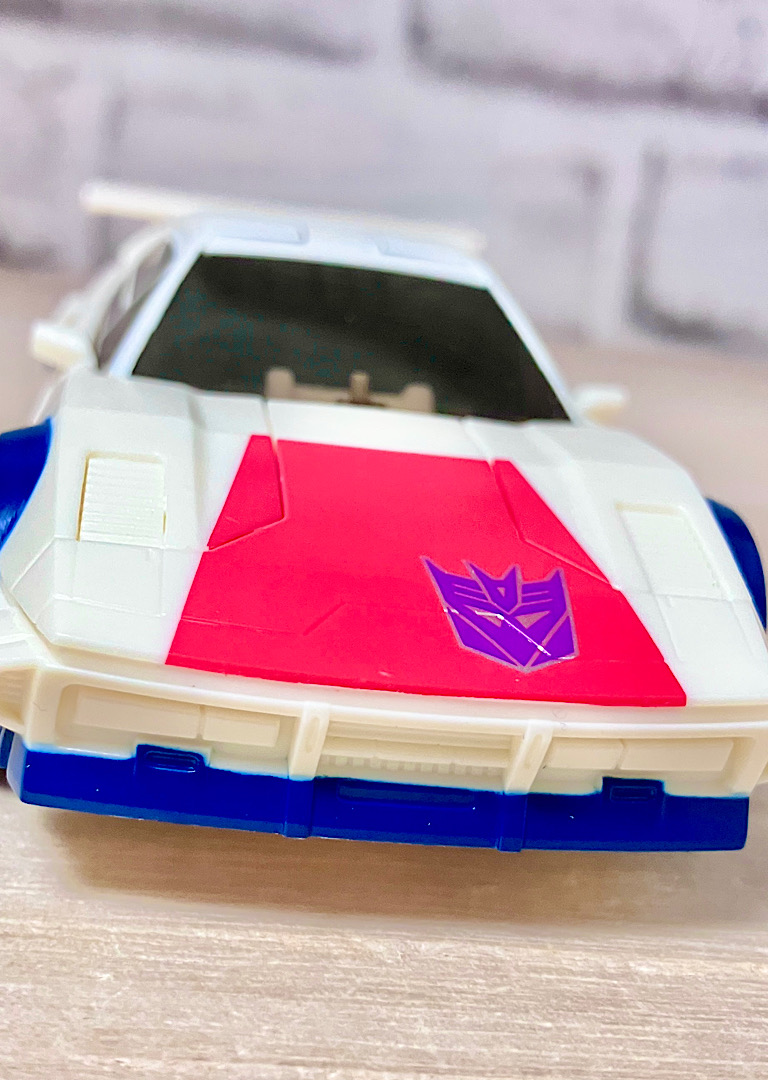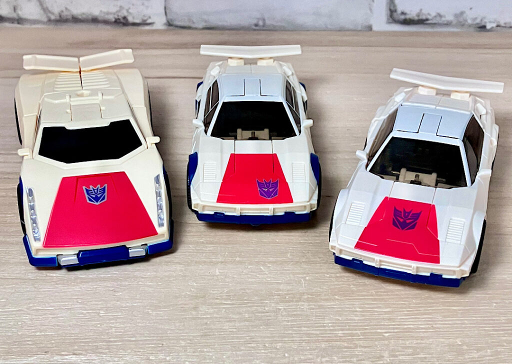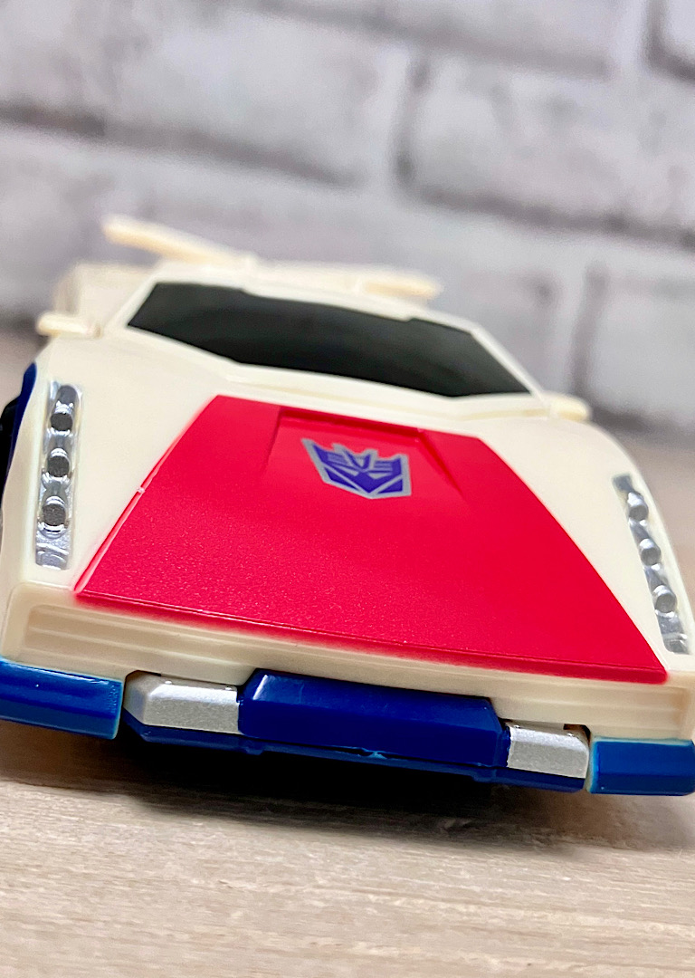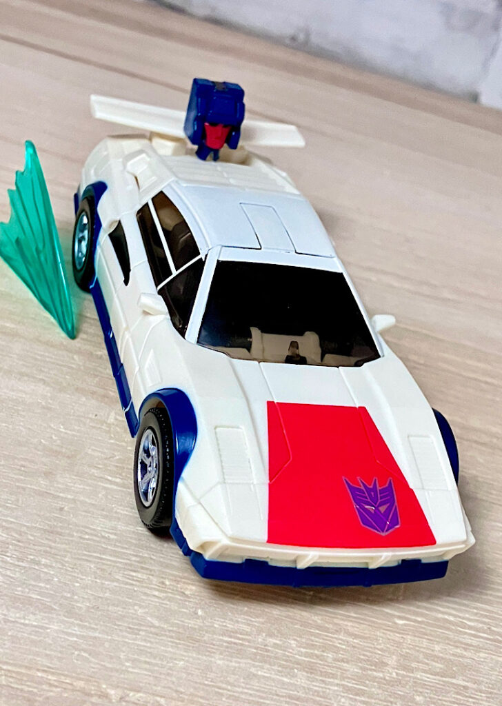 【ビークルモード】スポーツカーに変形。ブレークダウンはレガシースタンティコンの中でも最後の商品だったのですが、なぜかワイルドライダーの微リデコで済まされてしまいました。なのでフェラーリのようなカウンタックのような中途半端なデザインに。