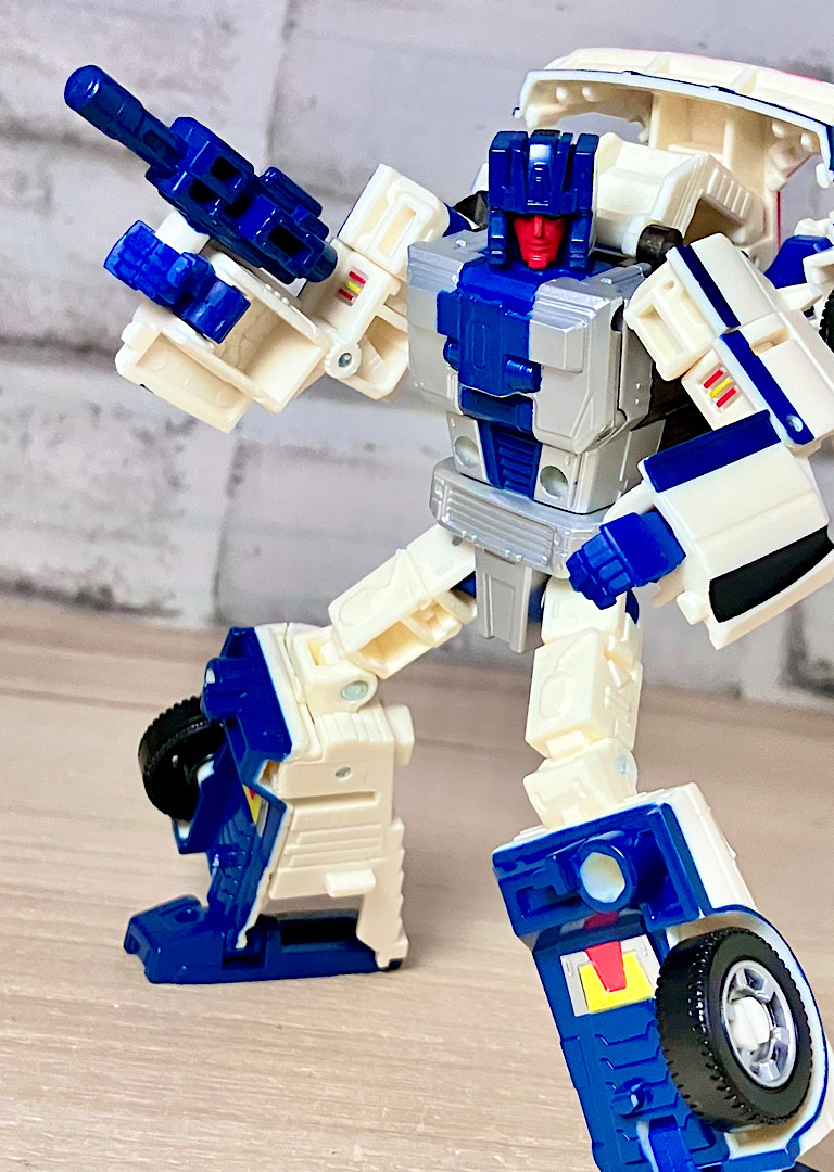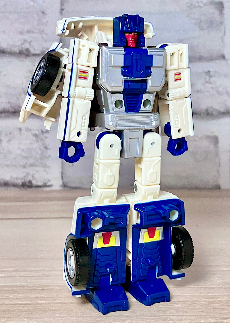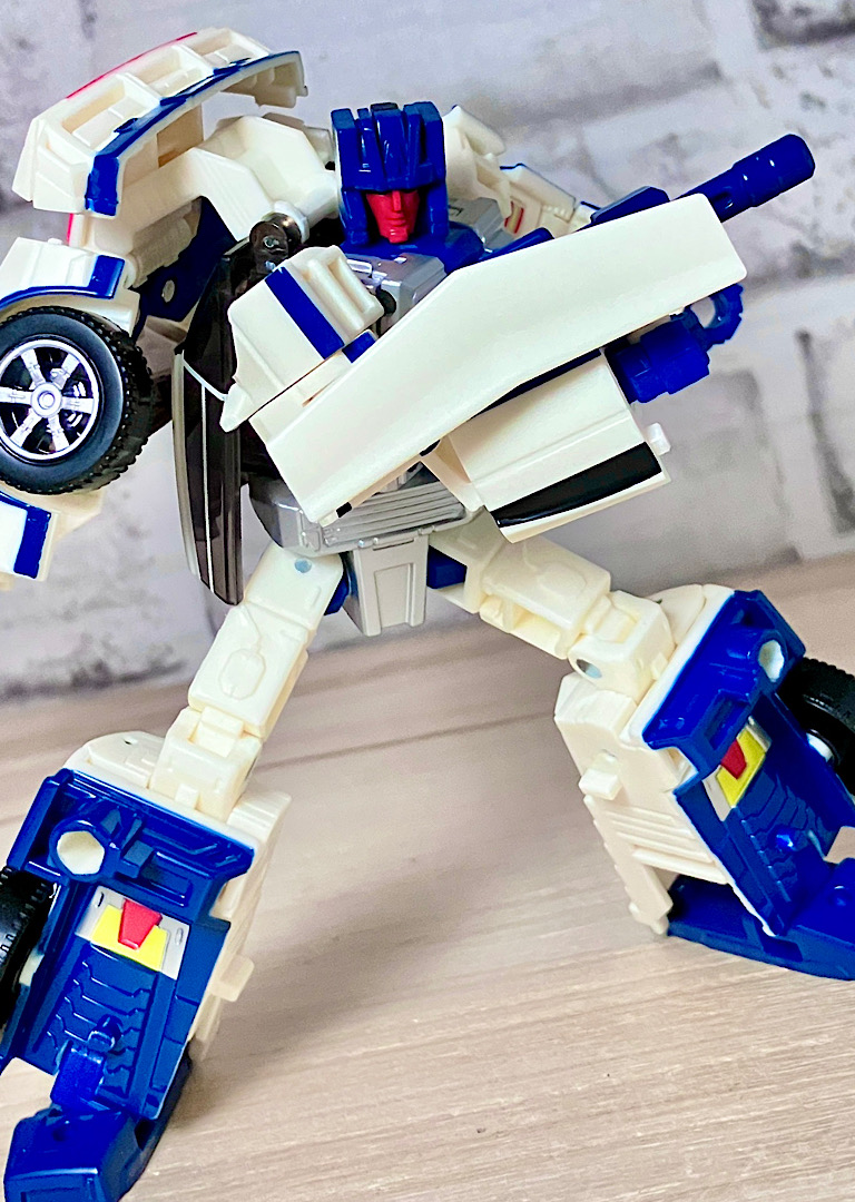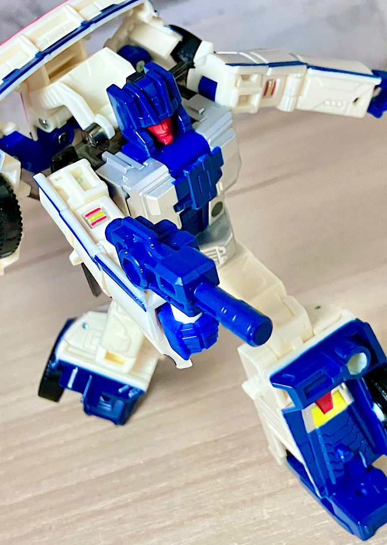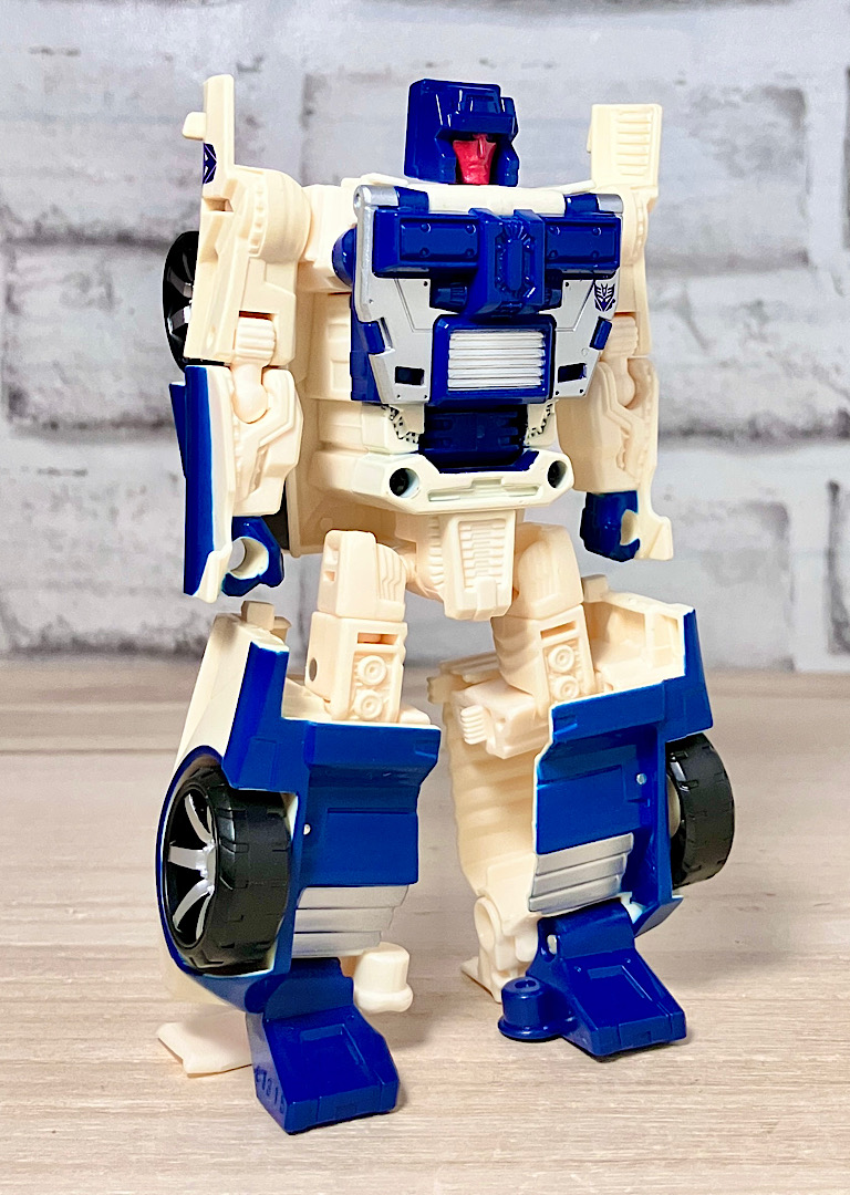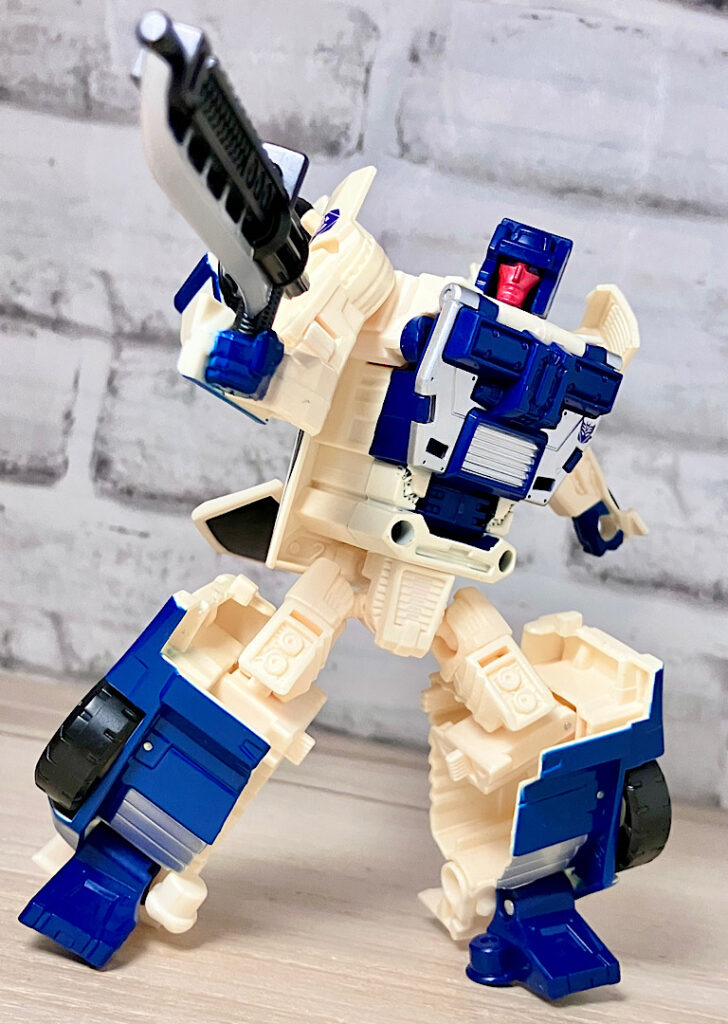 【ロボットモード】常に誰かに監視されていると怯えて生きているパラノイア。レガシーエヴォリューション版の仕様変更アイテムで、今回のセットでは唯一頭部が変更されています。ちなみに新頭部はG1オリジナルトイ(TFwikiより)準拠のものだったりします。