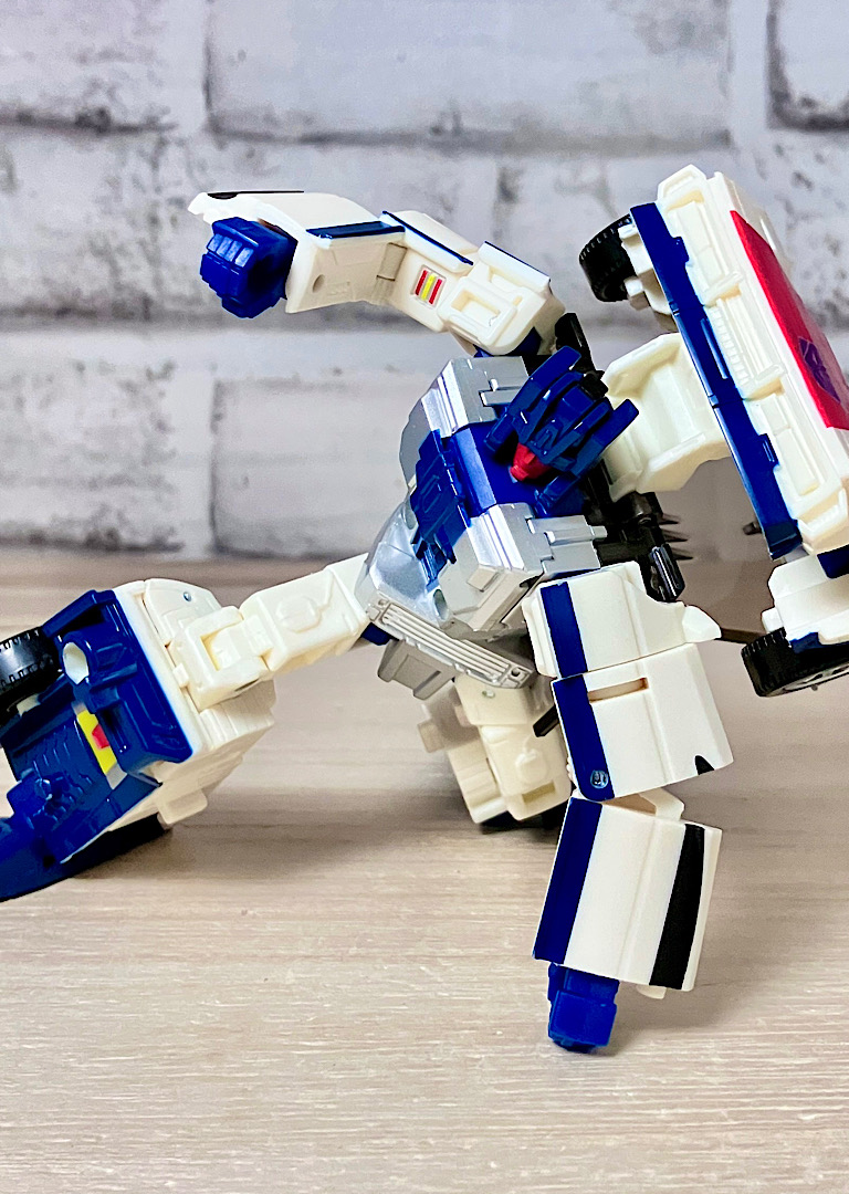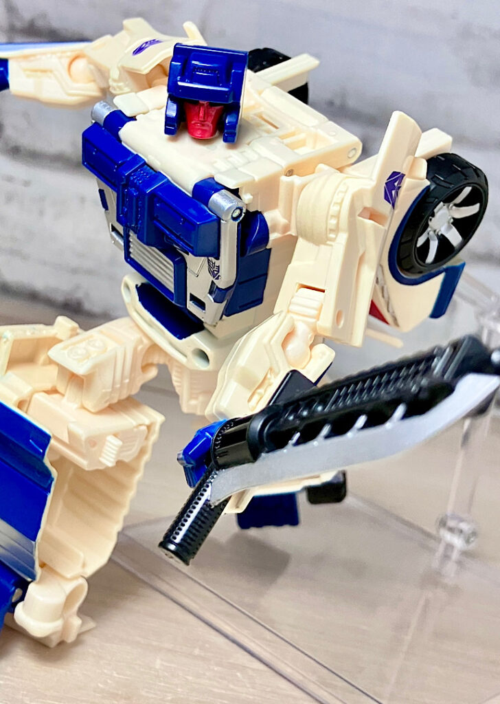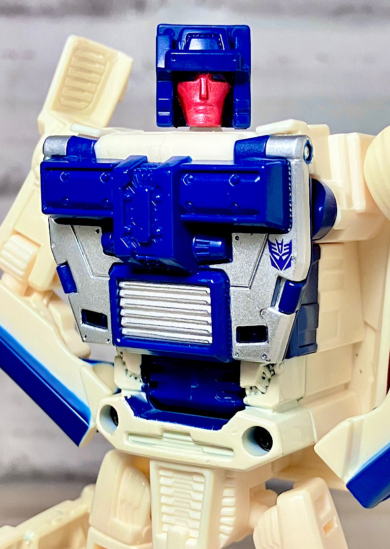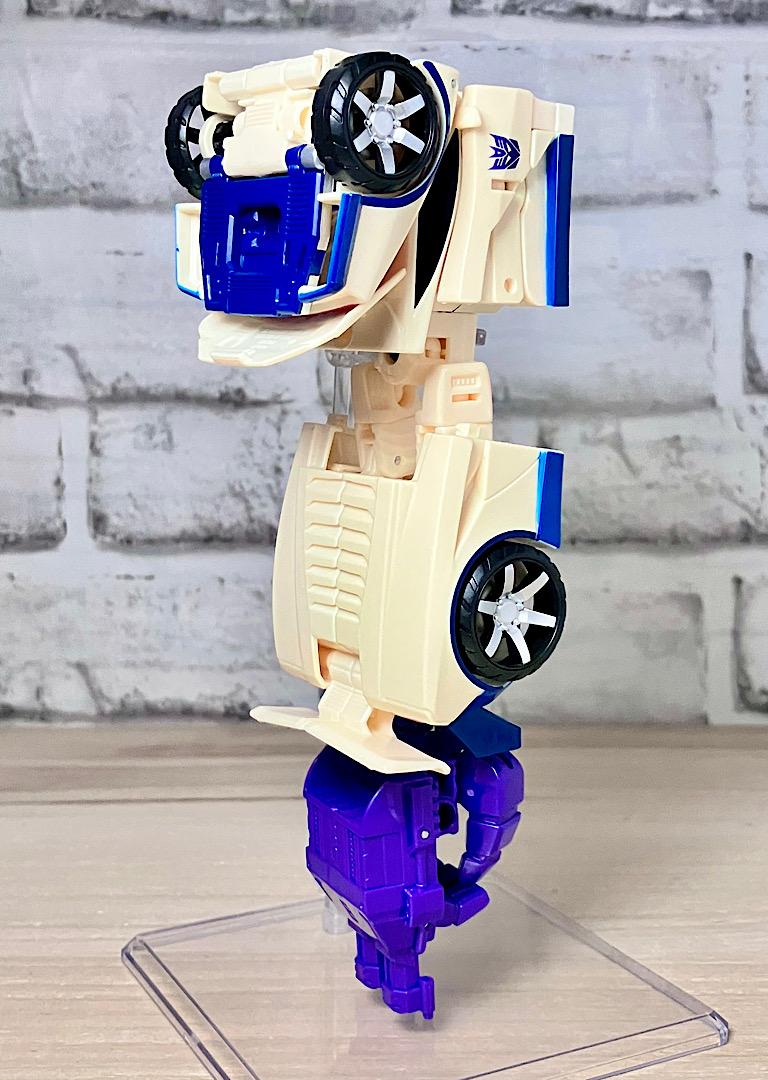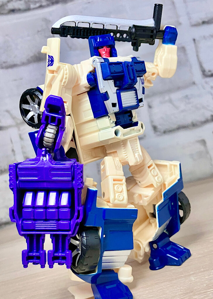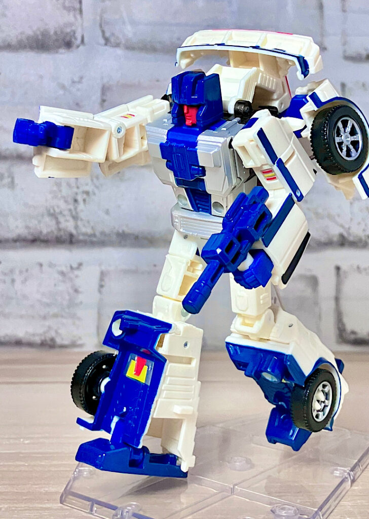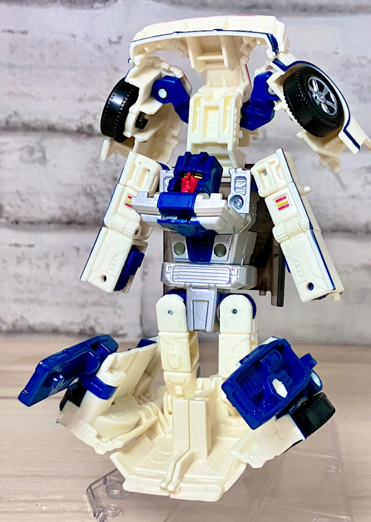 【ロボットモード】常に誰かに監視されていると怯えて生きているパラノイア。レガシーエヴォリューション版の仕様変更アイテムで、今回のセットでは唯一頭部が変更されています。ちなみに新頭部はG1オリジナルトイ(TFwikiより)準拠のものだったりします。