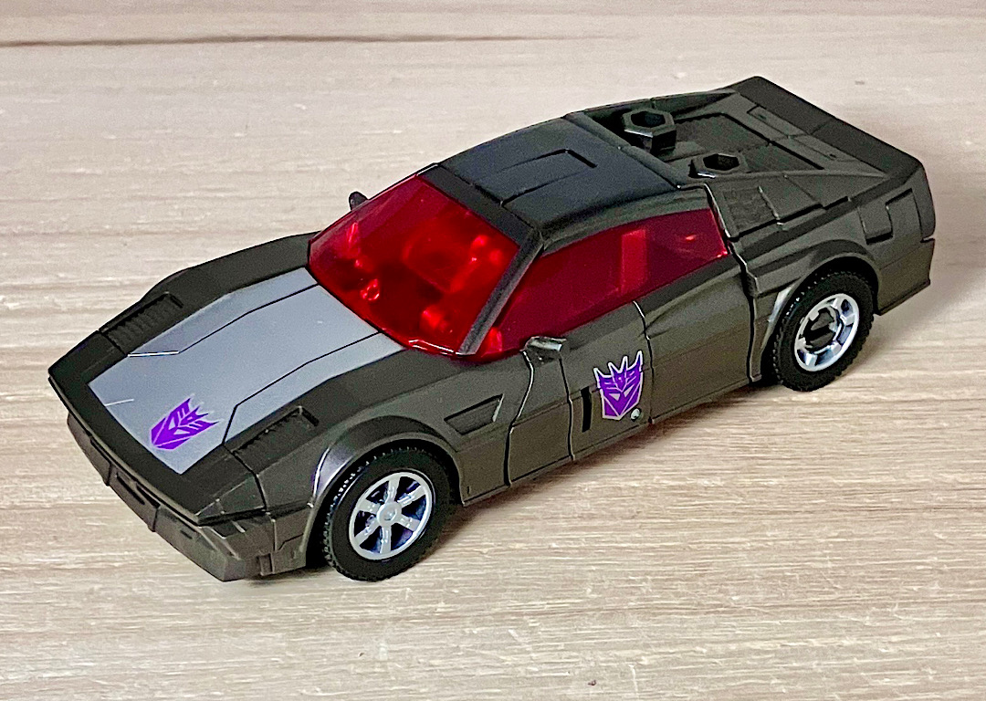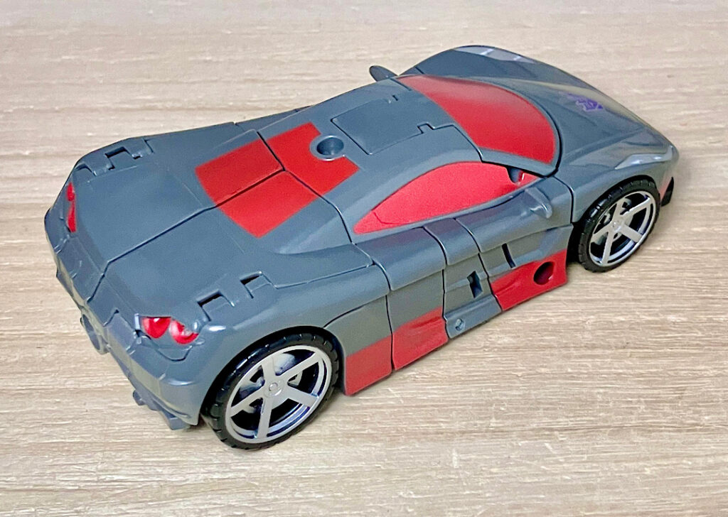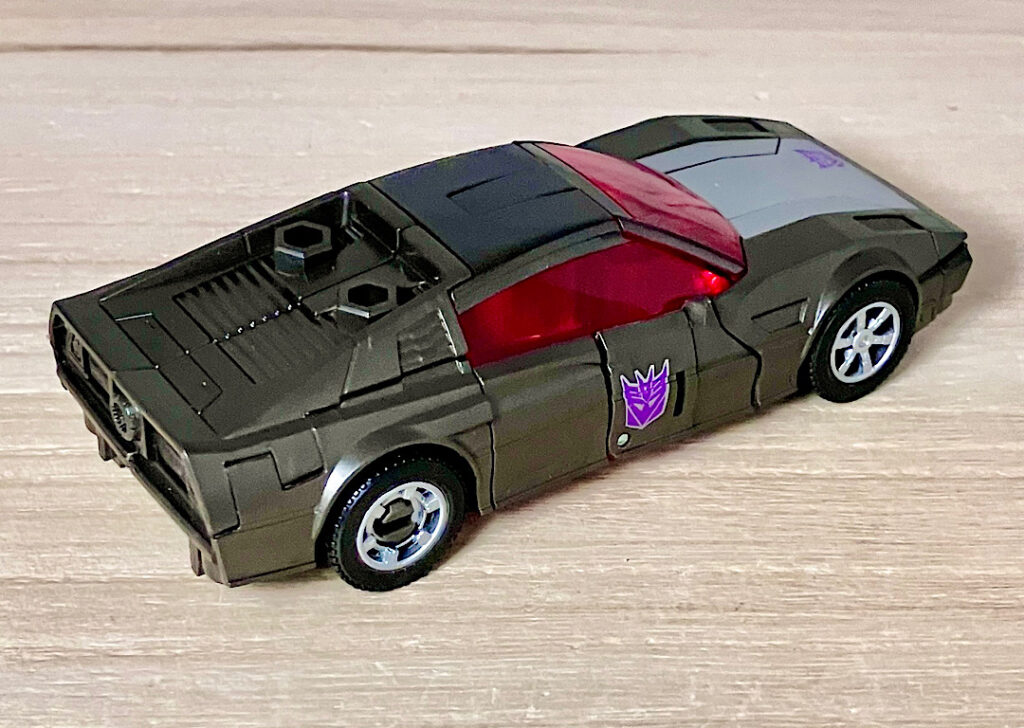【ビークルモード】フェラーリ308GTBっぽいスポーツカーに変形。真っ赤なクリアガラスが禍々しくてめちゃくちゃクールです。