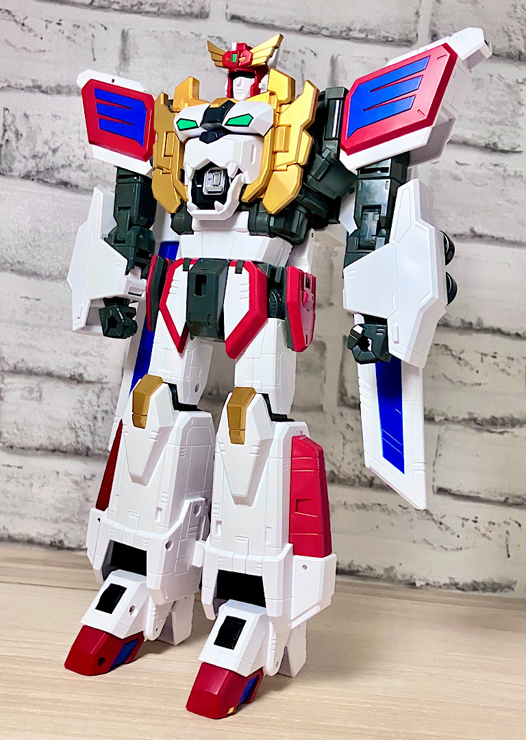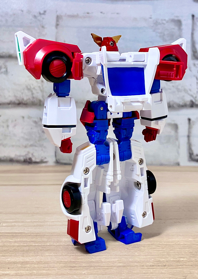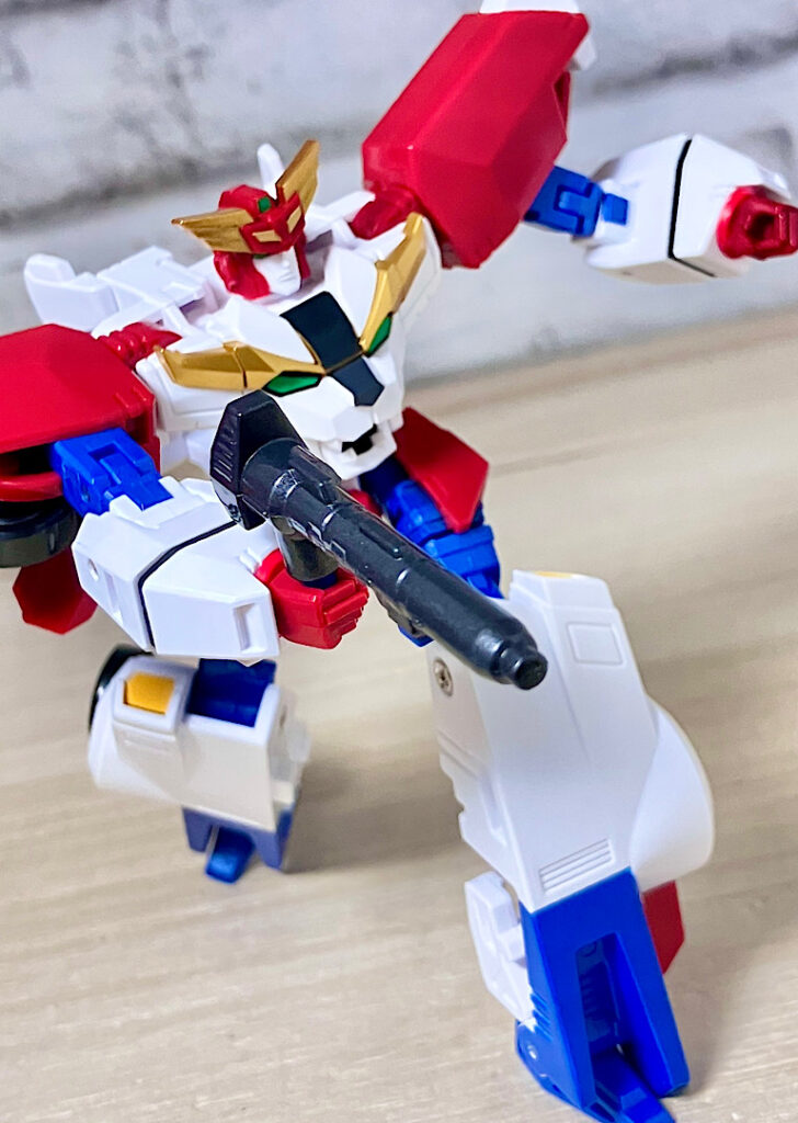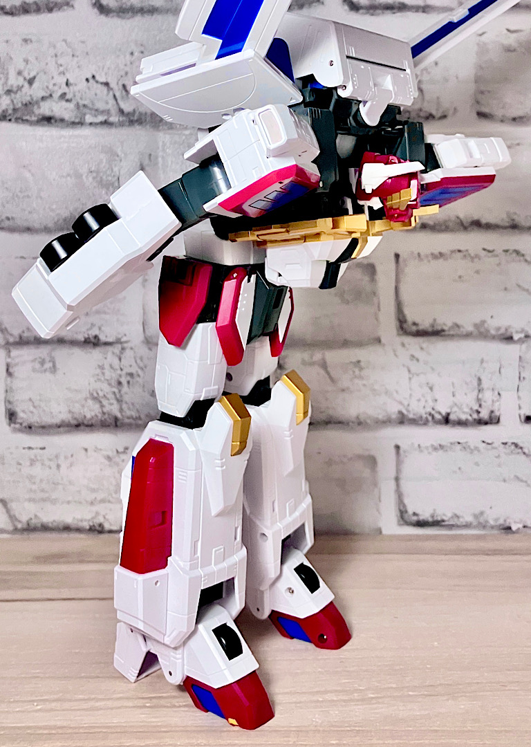 【ロボットモード】変形ロボットっぽさは薄いまさに勇者ロボ。基本的に成形色によって色分けされていて、扱いやすさが考慮されています。ねじ止めも贅沢に多用されており、トイライズはやっぱり高額商品なんですね。