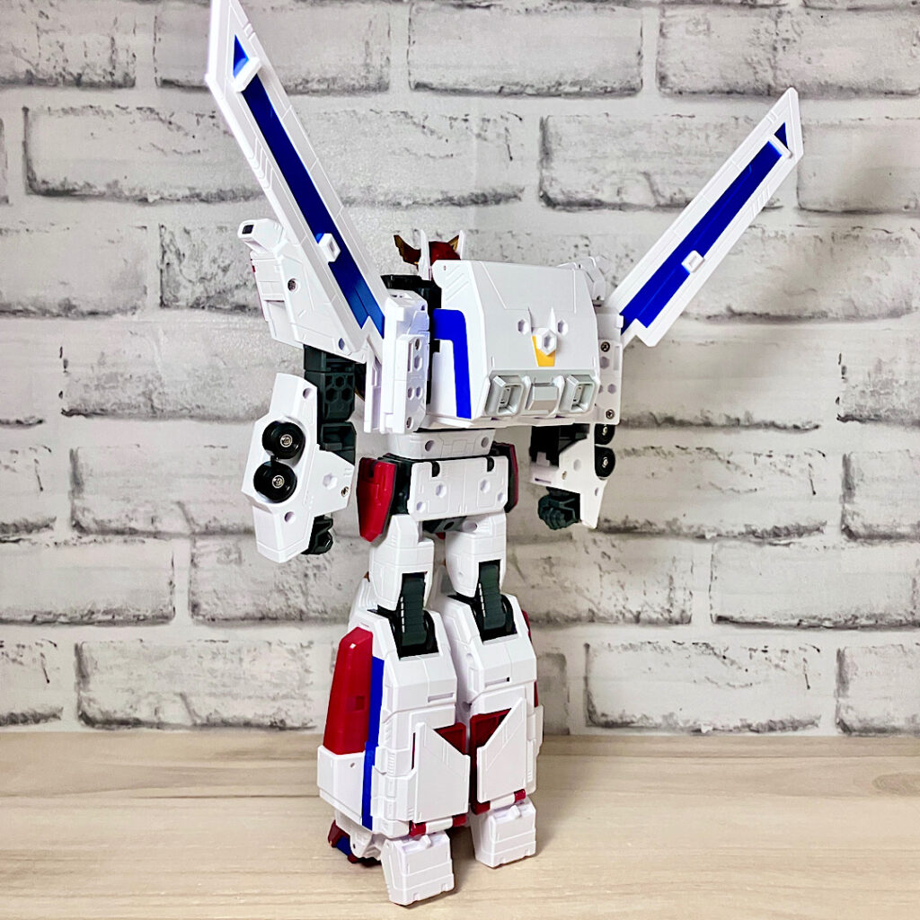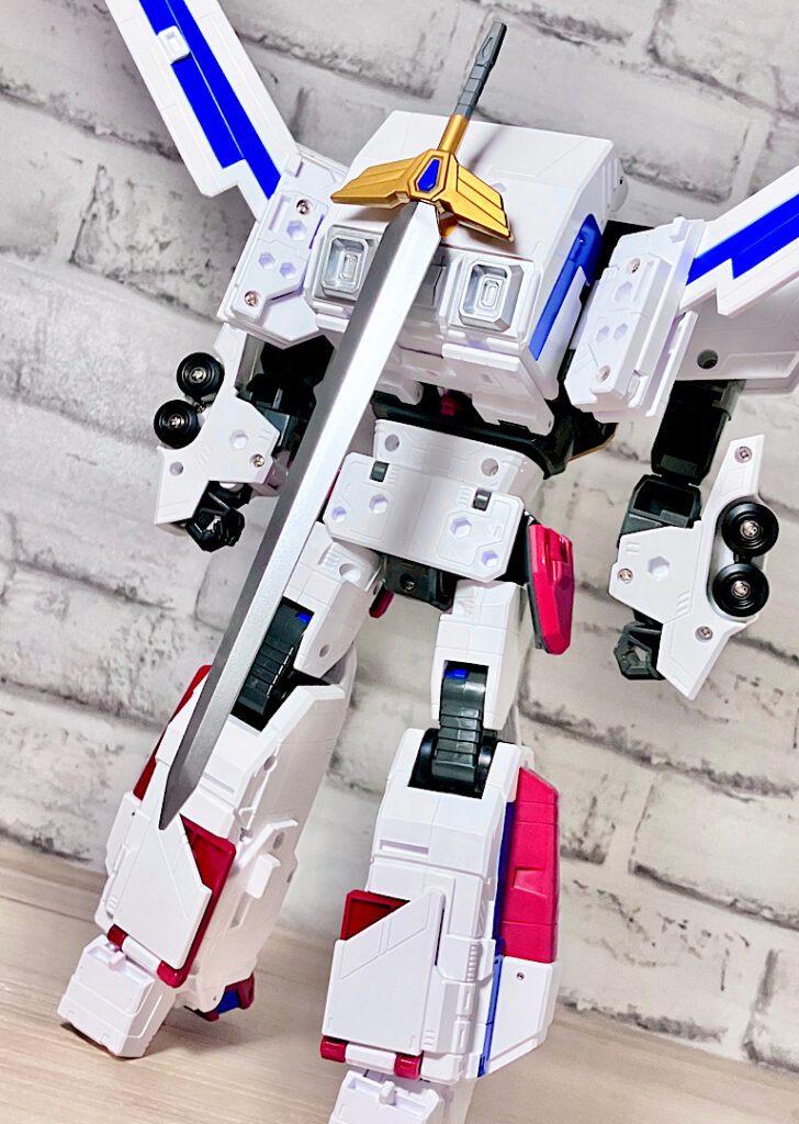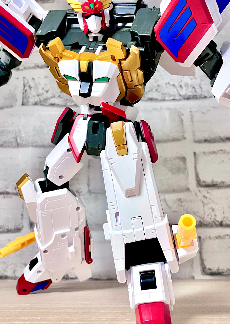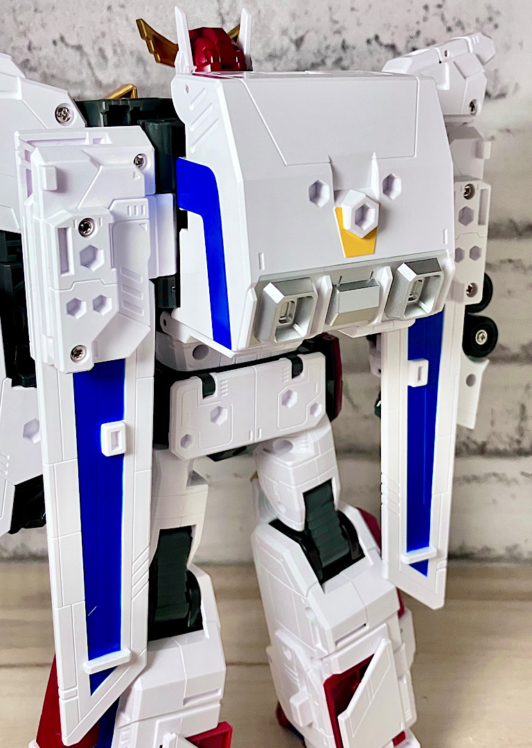 【ロボットモード】変形ロボットっぽさは薄いまさに勇者ロボ。基本的に成形色によって色分けされていて、扱いやすさが考慮されています。ねじ止めも贅沢に多用されており、トイライズはやっぱり高額商品なんですね。