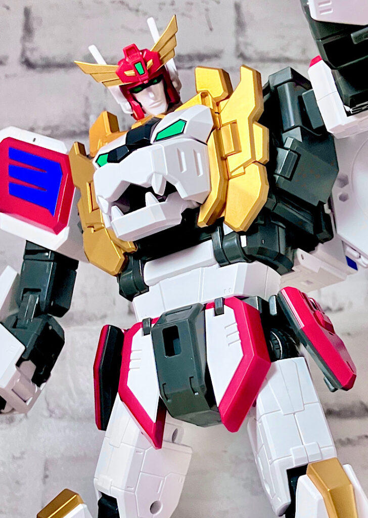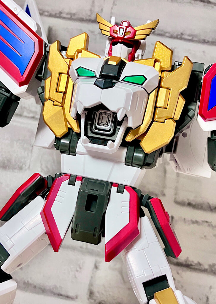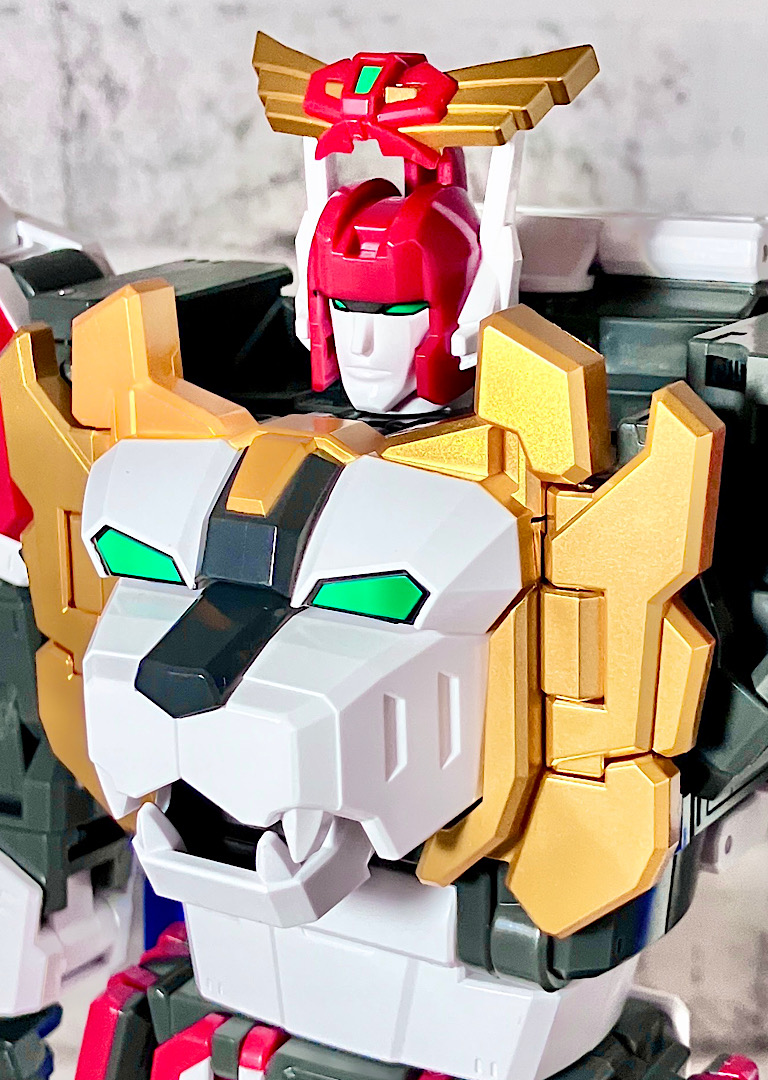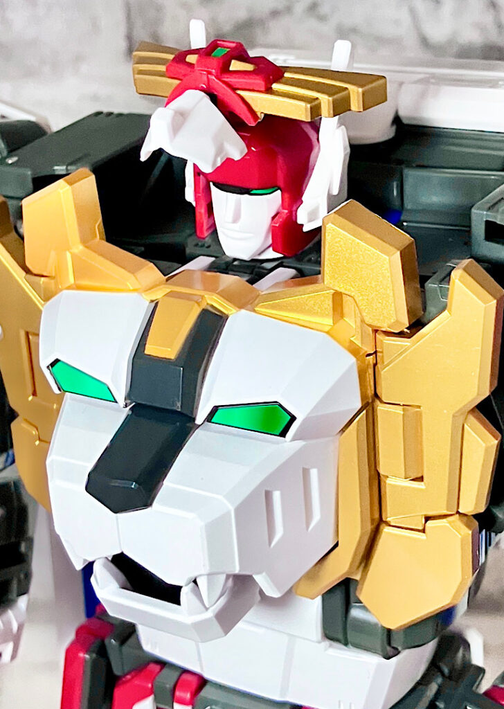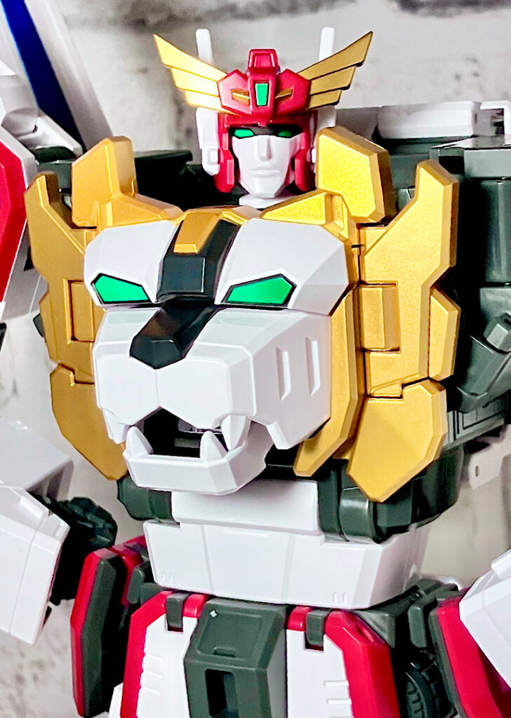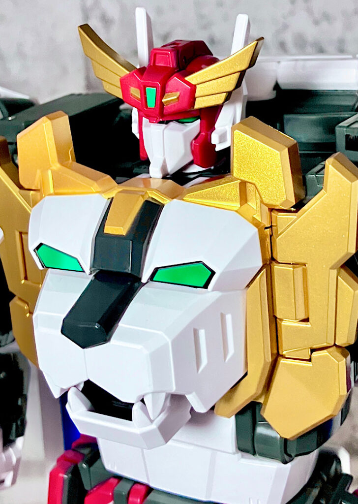 【アップ】頭部造形も塗り分けもバッチリでイケメン。胸のライオンは、当時品の反転ギミック(顔の有り・無しを選べる)をオミットすることで自然な仕上がりになっています。