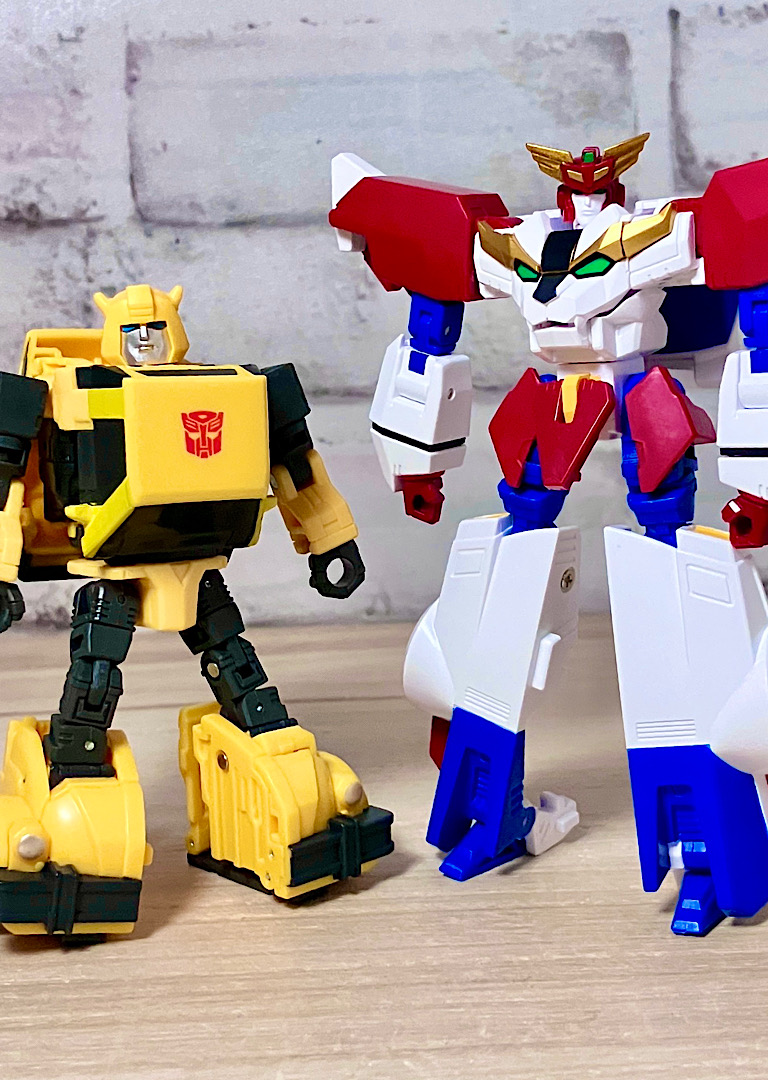 ちなみにサイズはこのくらい。バンブルビーが小さめとはいえ、意外と背の高さはあります。ただエクスカイザーはデザインの解像度が高めなので、手にとって遊んでいても実際より小さく感じます。