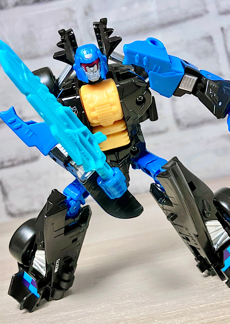 【ロボットモード】CWドラッグストリップのリカラー。カートゥーンチックな頭部デザインが悪そうでいいんですよね。青×黒のカラーもクールです。