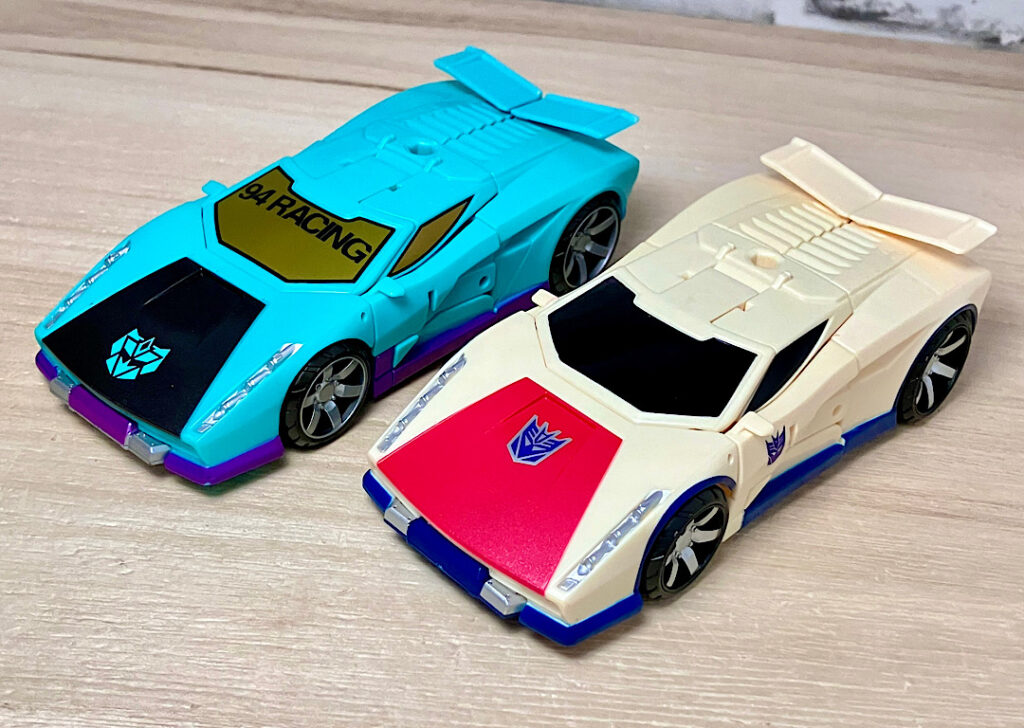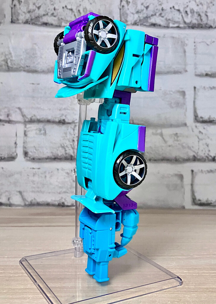 【ビークルモード】G2ブレークダウンは割と早い時期にボットコン限定品としてで拾われたこともあり、G2スタンティコンの中でも認知度高め。現実ではあまり見ない水色のスーパーカーがホントにカッコいいです。