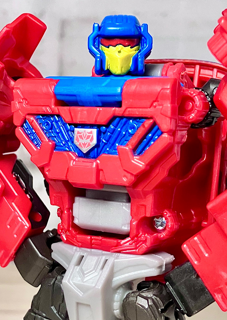 【ロボットモード】真っ赤なボディが鮮烈なデッドエンド。ドラッグストリップのようにカートゥーン風の頭部アレンジが新鮮です。