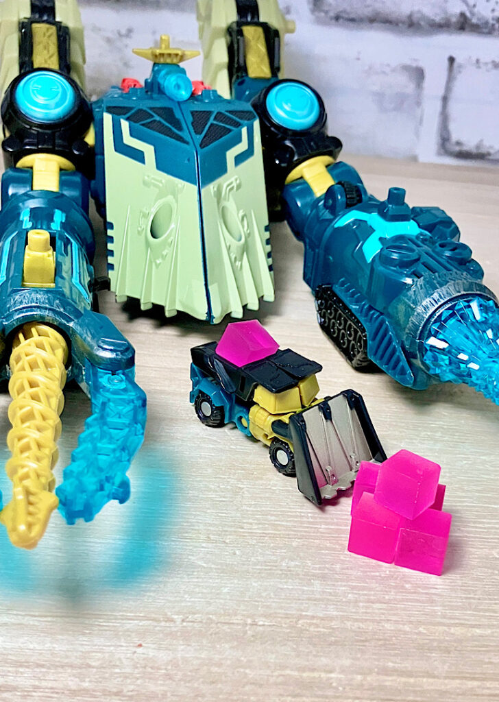 【ヘビーロード】パートナーミニコン(マイクロン)のヘビーロードも先に紹介しちゃいます。和名はかわいい「ブルブル」。荷台付きのブルドーザーに変形します。