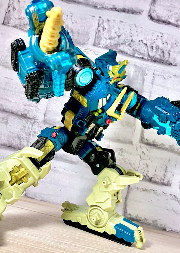 近年のTFにはかないませんが、基本的な可動ポイントはちゃんと確保されており、きっちり動きます。プラの厚みもあって安定感のある遊び心地。