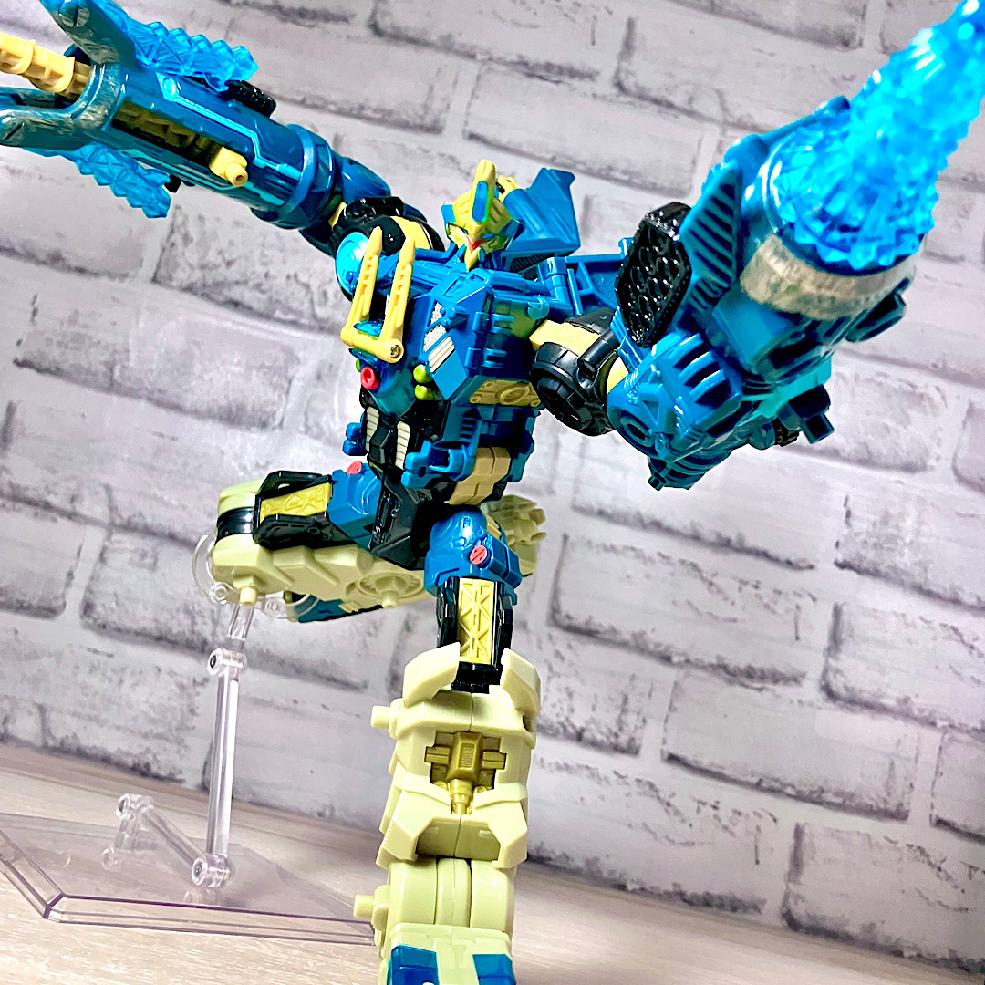 【ロボットモード】ワークモードから脚部を伸ばせばロボットモード完成!平成TFらしいゴテゴテと情報量の多いデザインがストレートにカッコいい!もしかしたら歴代TFでもカッコ良さならトップクラスかもしれません。