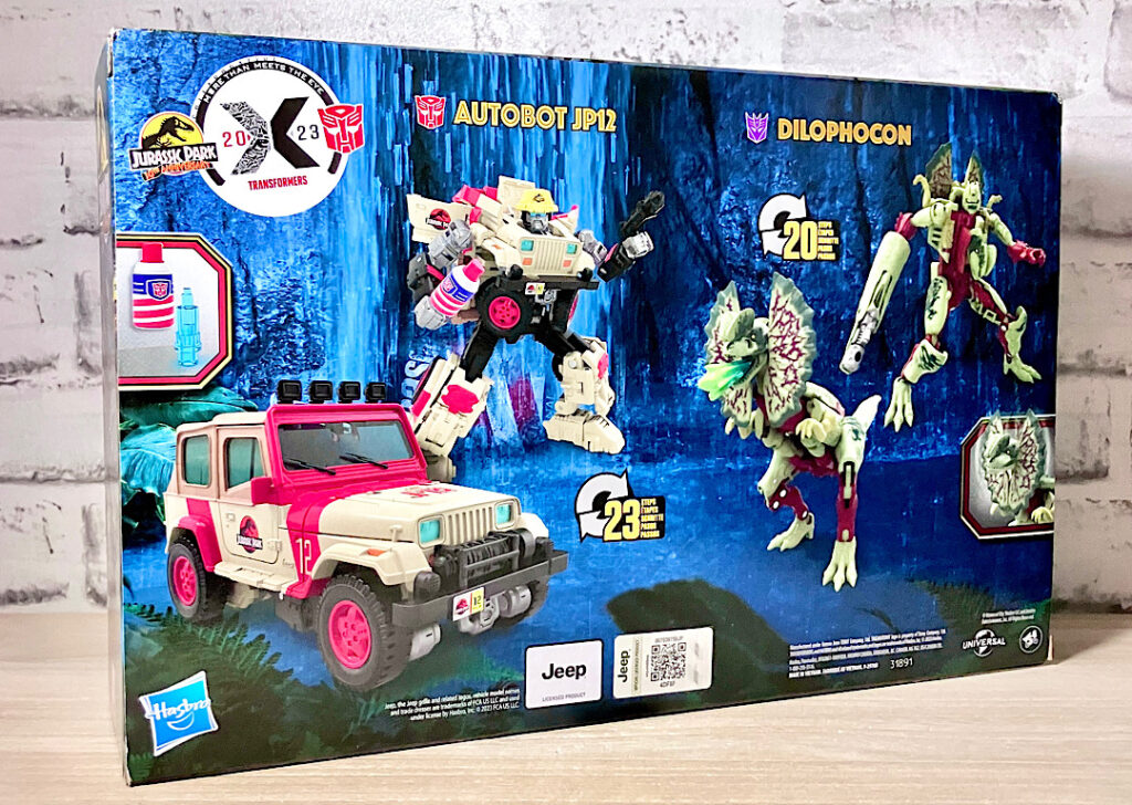 【パッケージ】まさかのTF×ジュラシックパークコラボ第2弾!王道メジャーどころだった第1弾とは打って変わってややマイナーな場面がモチーフになっており、産業スパイとして恐竜の胚を盗み出したネドリーと、彼を殺したディロフォサウルスがTF化です。ちなみに国内には未導入。