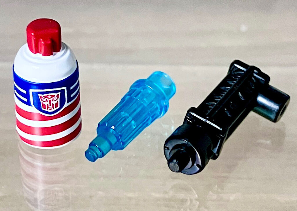 【付属品】JP12用のアクセサリはこの3つ。TFではあまり無いようなものが並んでおります。