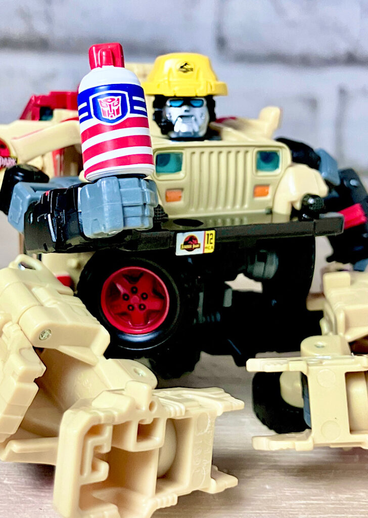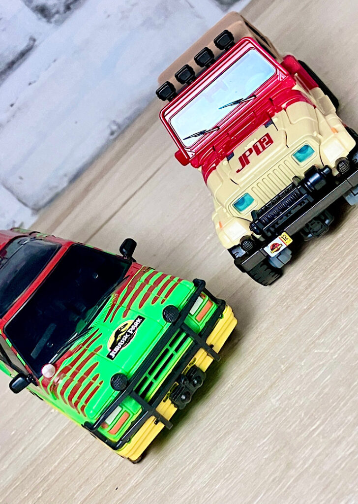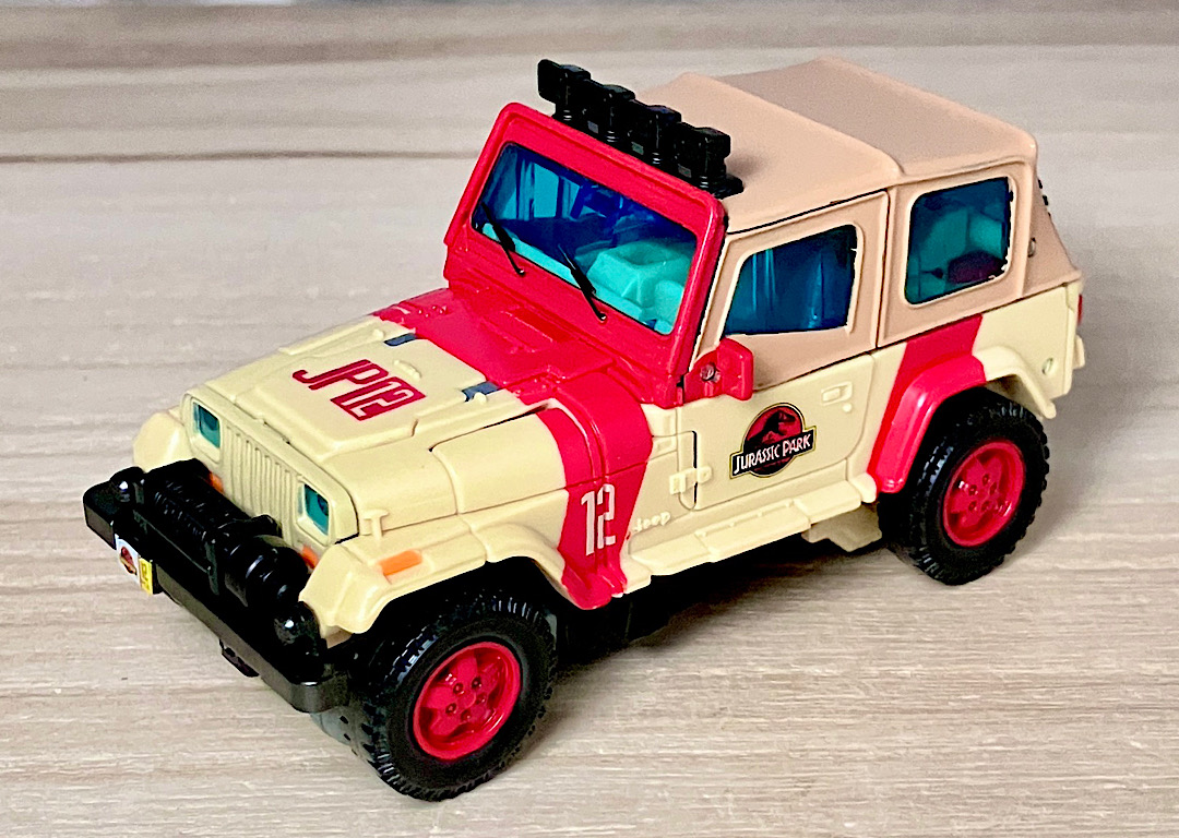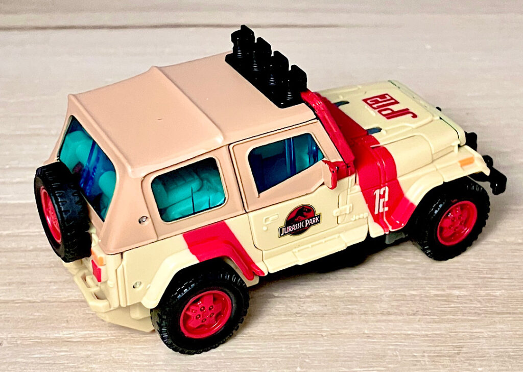 【ビークルモード】ジープラングラーに変形。ネドリーがパークから逃げ出す時に乗っていた車ですが、カラーが若干違うようです。ライセンス有りで、ぱっと見はジープのミニカーかなというくらいの造形の良さ。