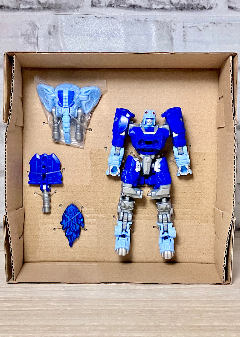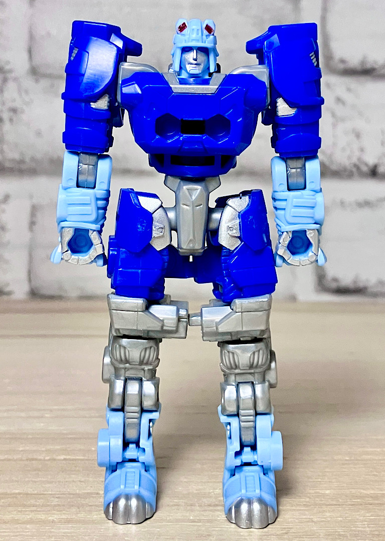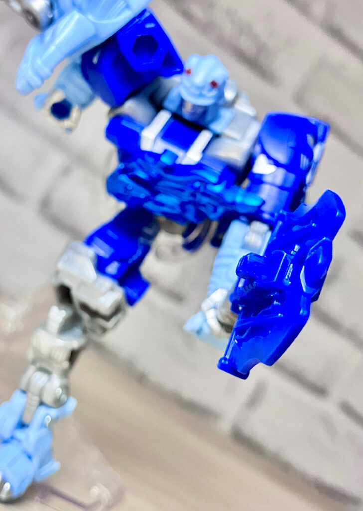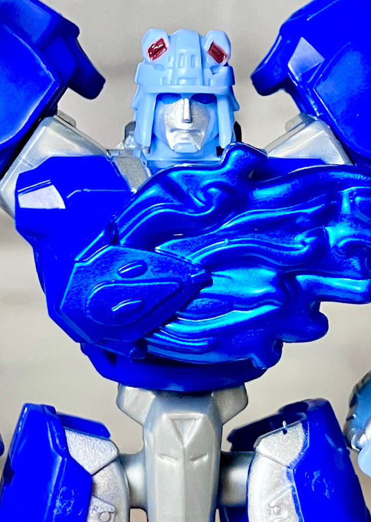 【アップ】クマミミのような装飾があって愛嬌のある頭部デザイン。小さいのにTFらしさの出たいい造形してます。胸のアクアエナジーはブルーのキャンディ塗装。