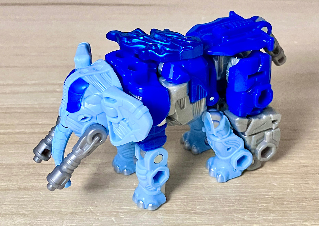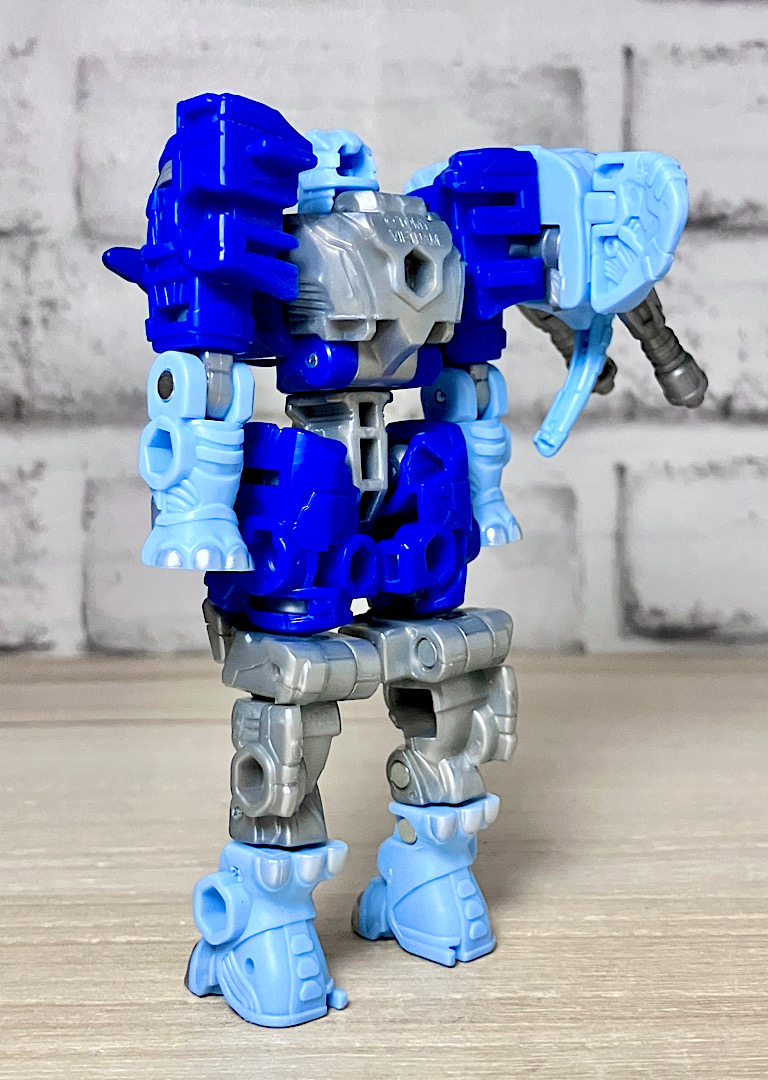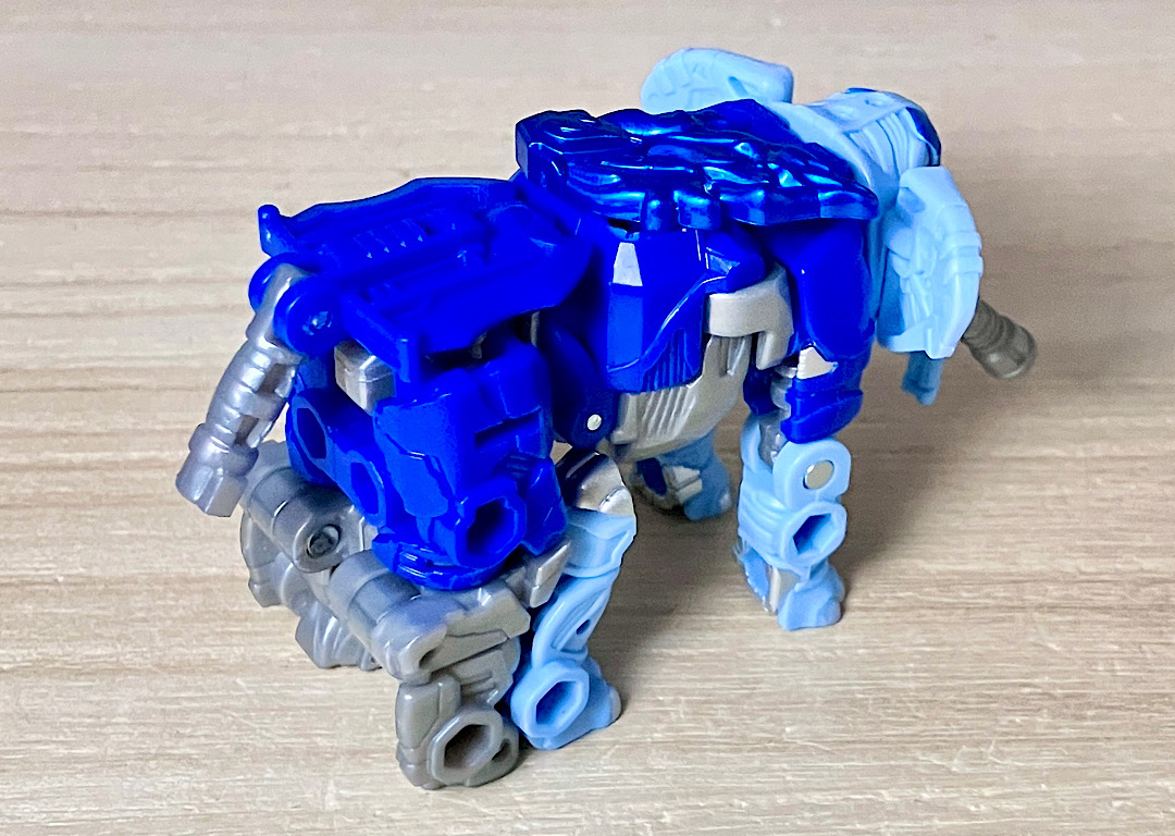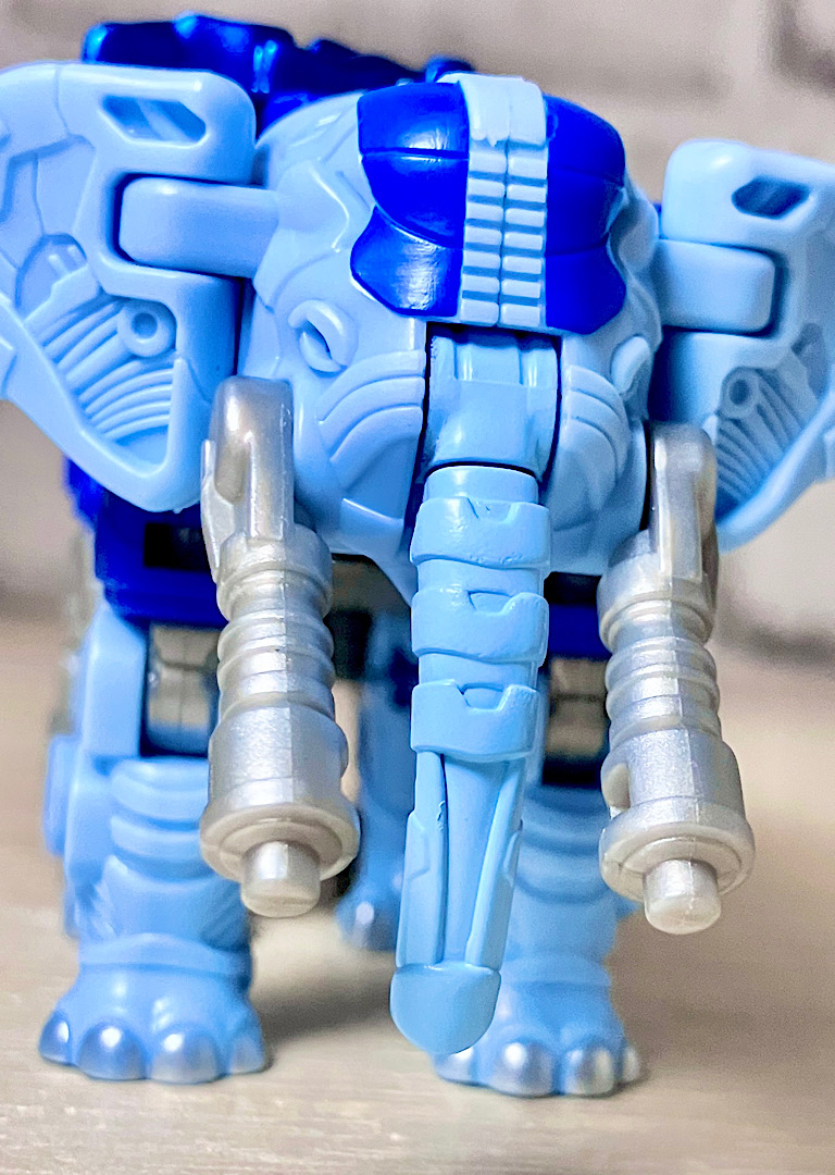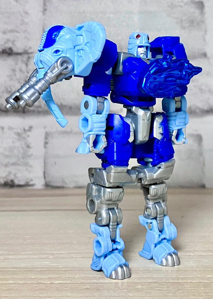 【ロボットモード】ゾウの頭とエナジーを取り付けてロボットモード完成。ゾウ型TFということでブルー系でまとめられています。ライトロングと比べて手が短かったり足に肉付きがあったりで、全体的にガッチリ体型に見えるように工夫されていますね。