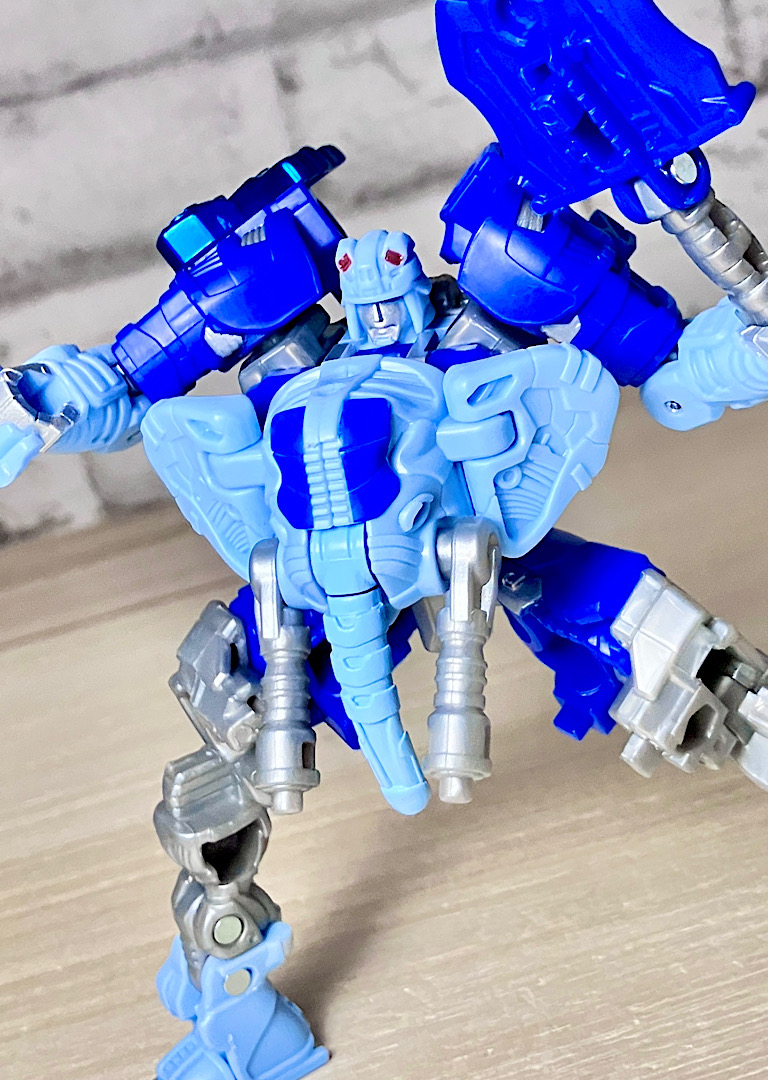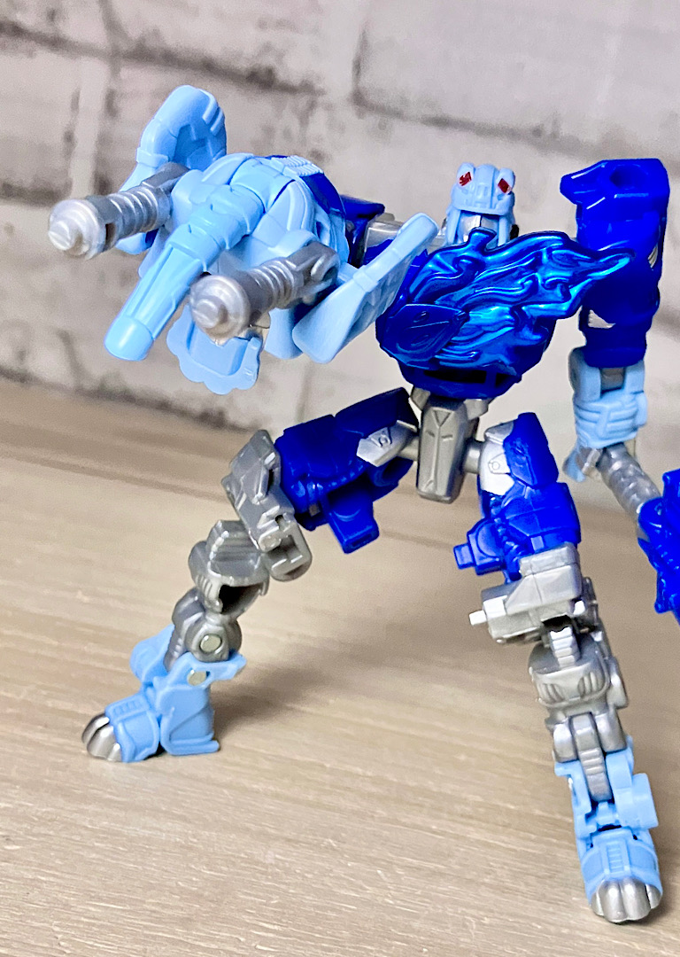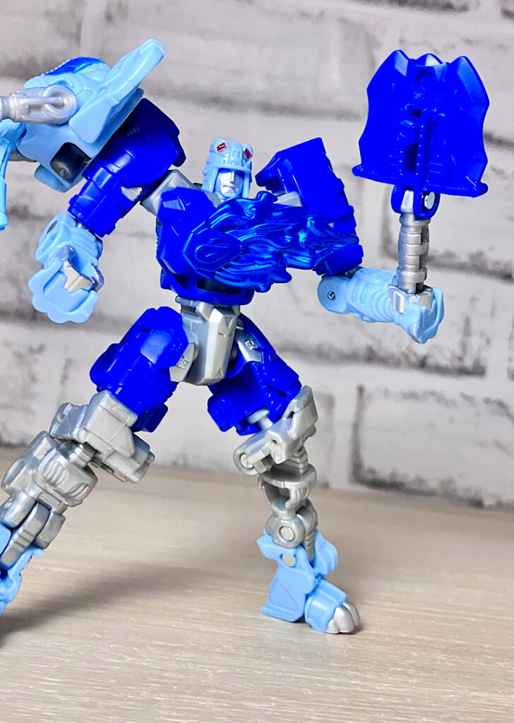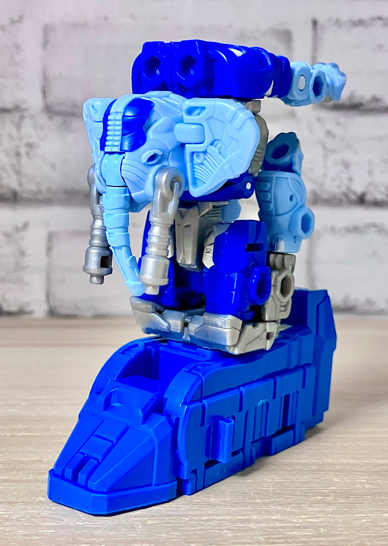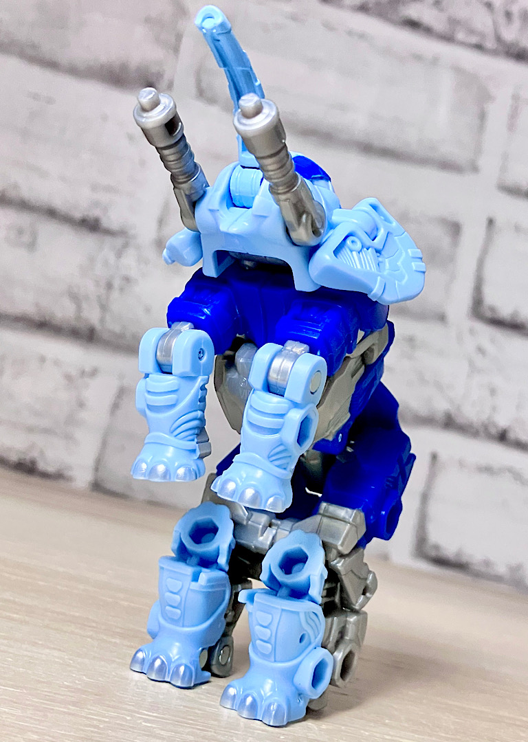 【ロボットモード】ゾウの頭とエナジーを取り付けてロボットモード完成。ゾウ型TFということでブルー系でまとめられています。ライトロングと比べて手が短かったり足に肉付きがあったりで、全体的にガッチリ体型に見えるように工夫されていますね。