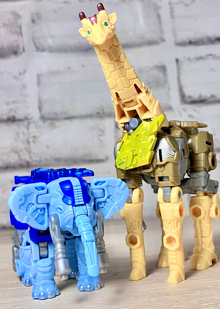 というわけで第1弾の動物エナジービースト2体。動物のチョイスが日本的で面白い。動物園の2大スター共演です。ちなみにロボ形態だとボリュームに違和感はありません。