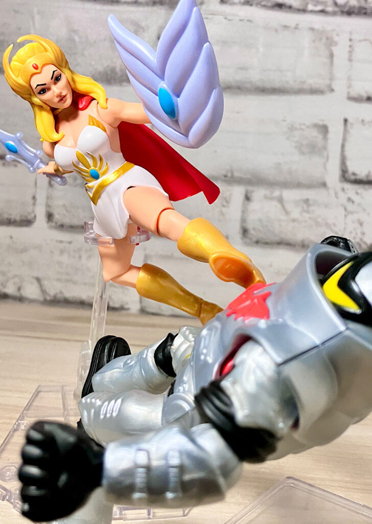 【フロント&リア】アニメ「マスターズオブザユニバース」の姉妹作「プリンセスオブパワー」の主人公。ヒーマンの双子の妹で、ソードオブプロテクションの力でエセリアを守ります。ワンダーウーマンとも近そうですが、バトル&ファンシー少女アニメということで実は現代のプリキュアなんかに繋がる系譜なんじゃないかと個人的に思っています。