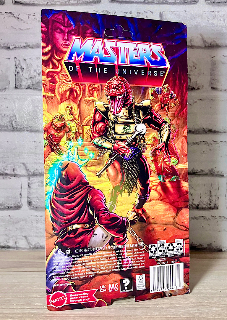 【パッケージ】スネークマンの戦士で、オリジンズで初登場した新キャラ。コミックを見ると、ロードグラスプらと一緒にレディスリザーの配下で動いているようです。オリジンズの商品展開で全くの新キャラというのはもしかして初めてかな?