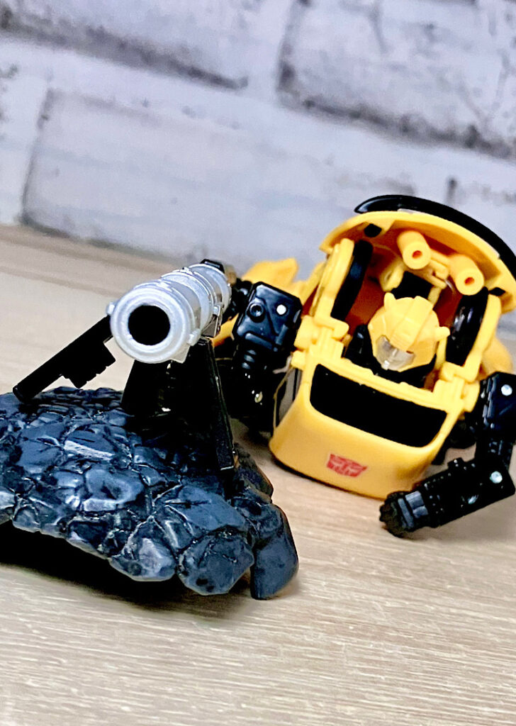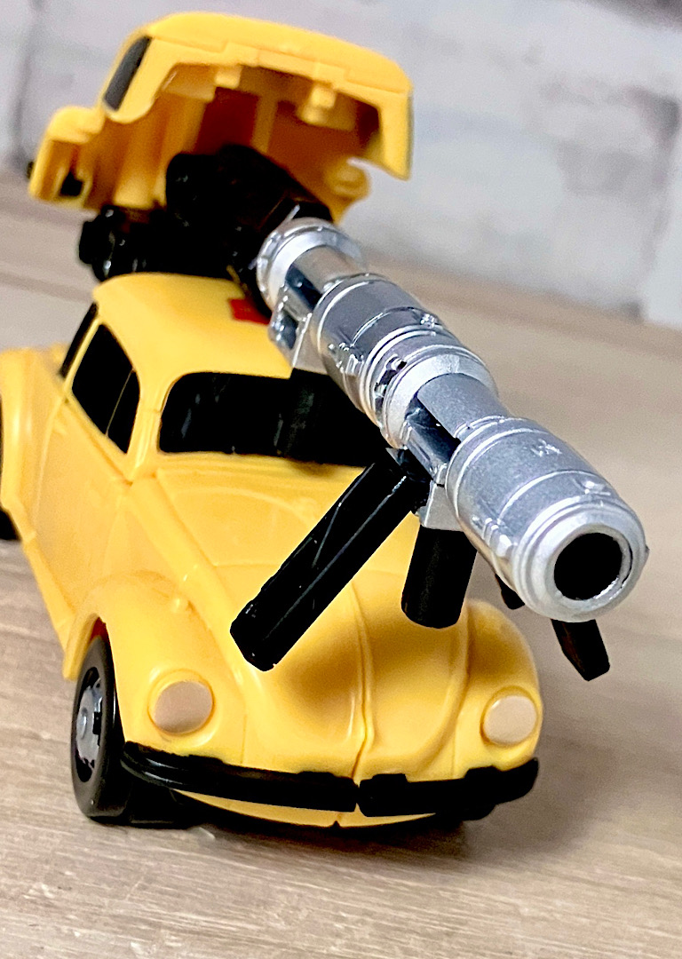 なおビークル時のガワに5ミリジョイントの無いビーですが、少し変形を崩してこんな風にバズーカを装着できます。実写映画の時のバトルビークルモードみたいでカッコいい。