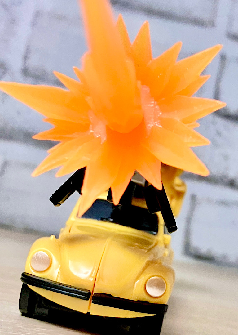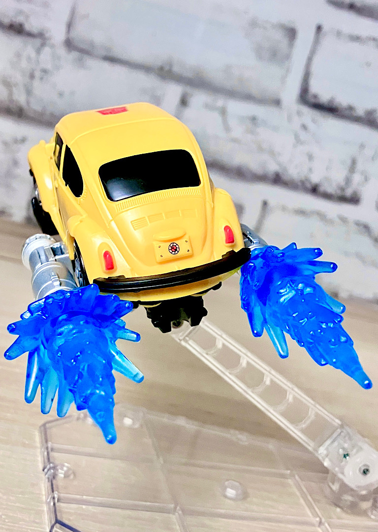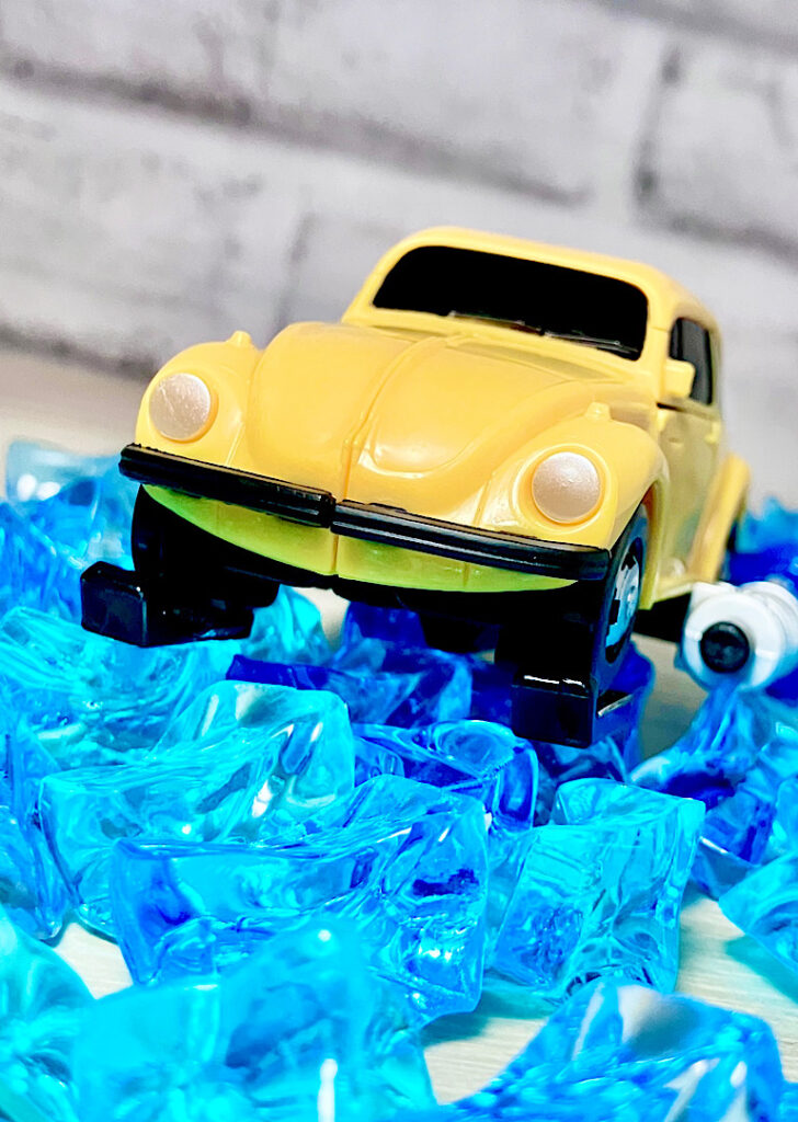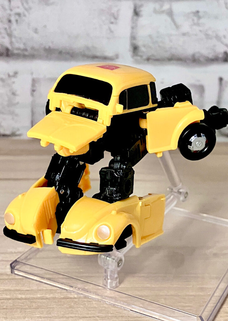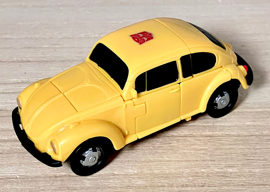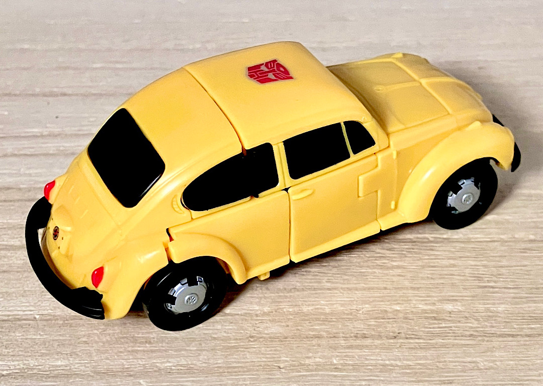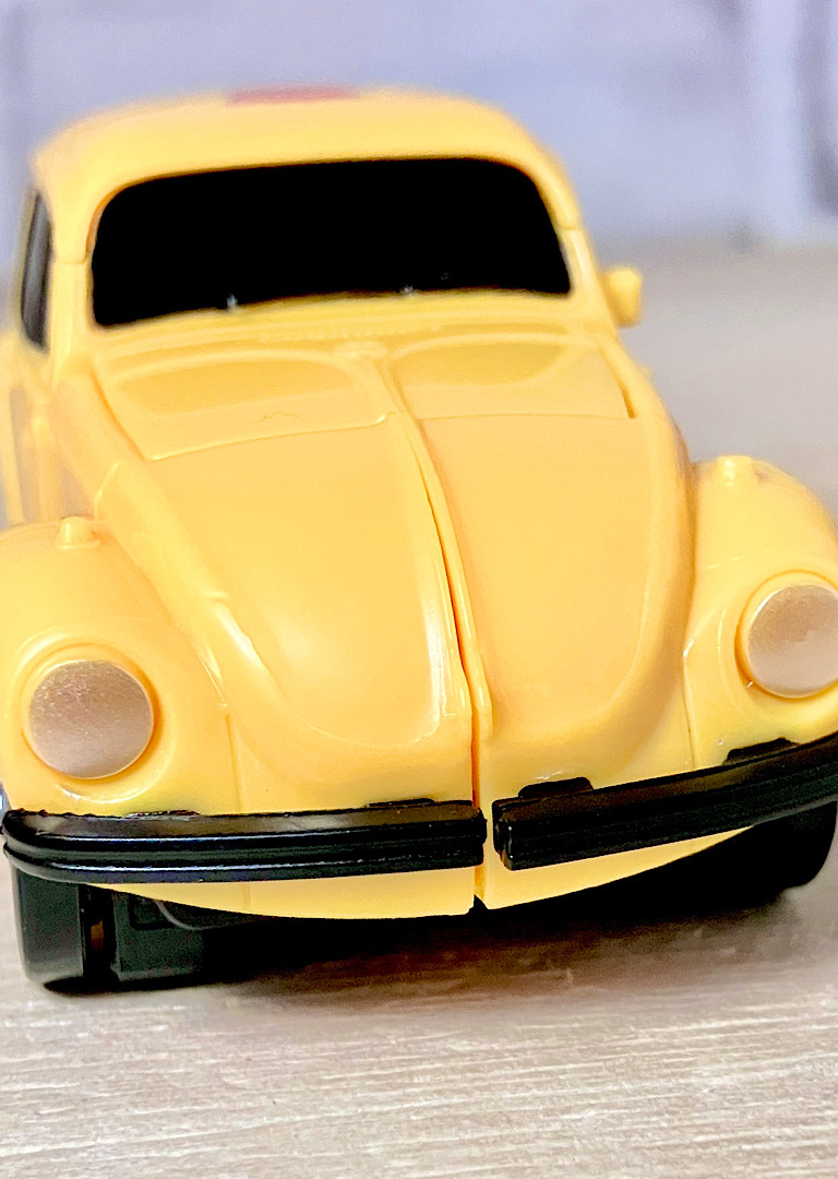 【ビークルモード】ライセンス有りのフォルクスワーゲンビートルに変形。ジェネ系でライセンス有りはこの型だけです。カラーはレモンイエロー系で、WFC版とは異なります。