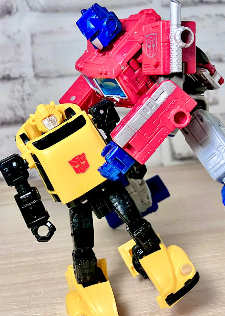 WFC版と。胸のオートボットマークは良かったですが、やっぱ顔色がなぁw。また、山吹色のボディカラーや窓のクリアパーツなど、全体的にWFC版の方が高級感があります。
