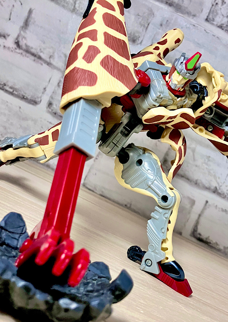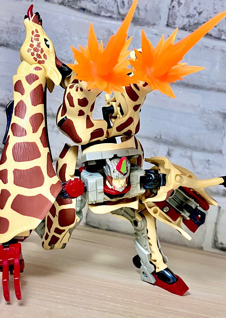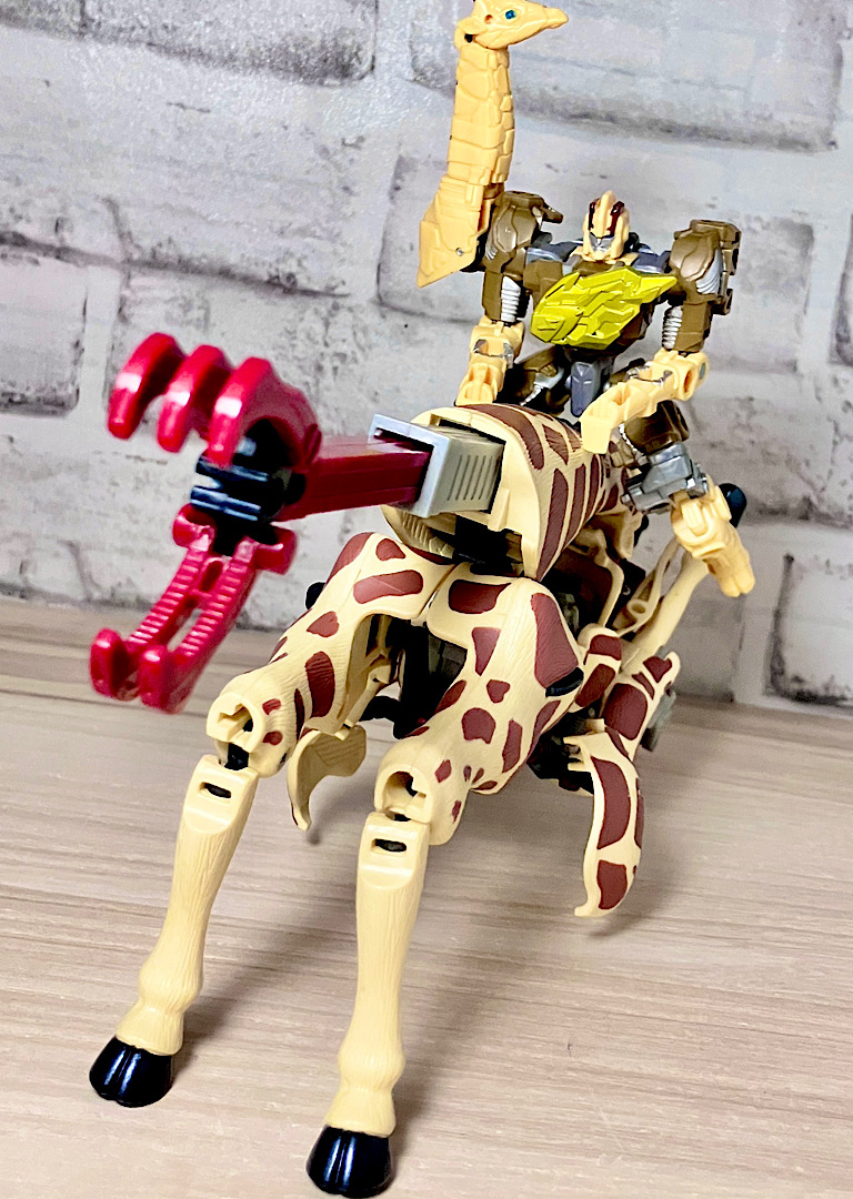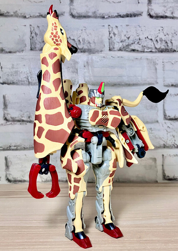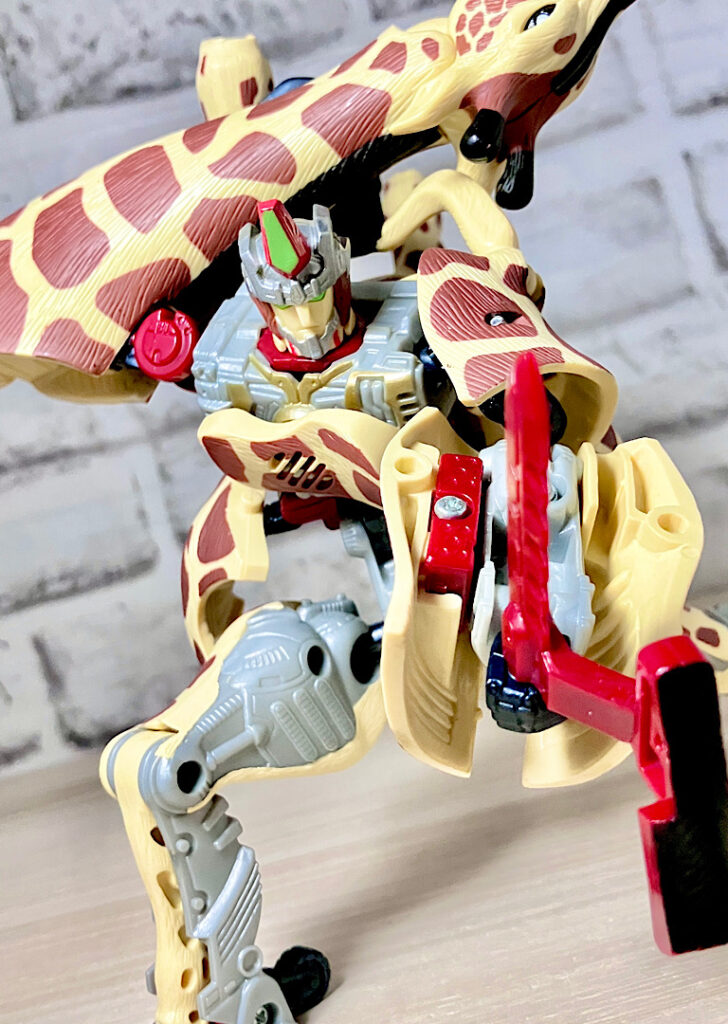 キリンというまさかのモチーフとギミックてんこ盛りのボディが魅力。変形もそんなに難しくなくて、程よい佳作だと思います。