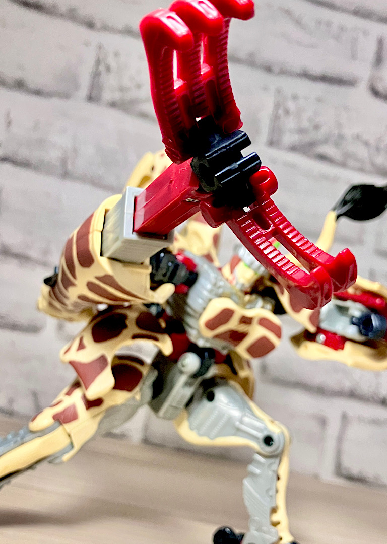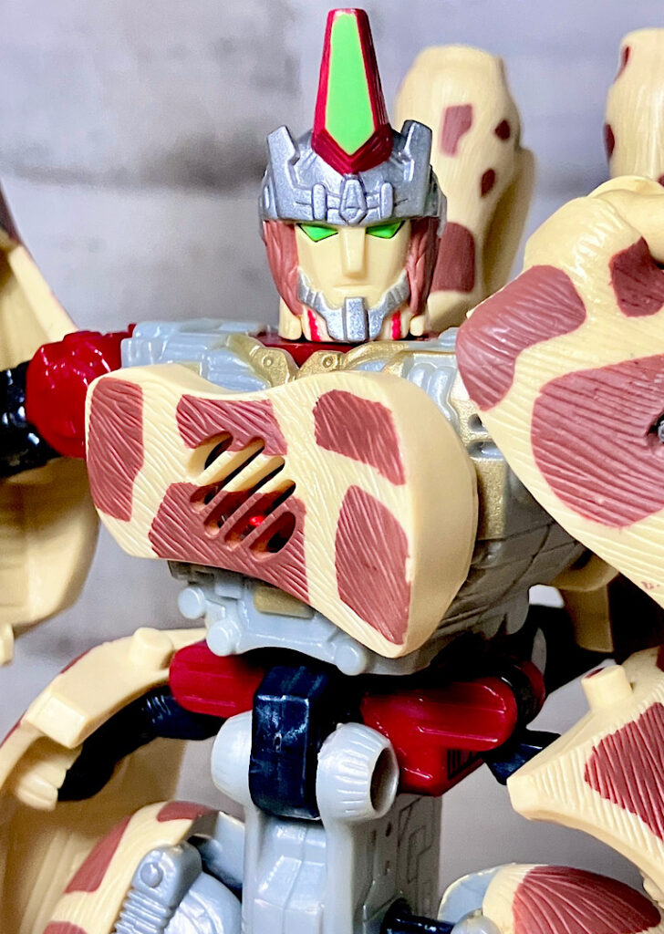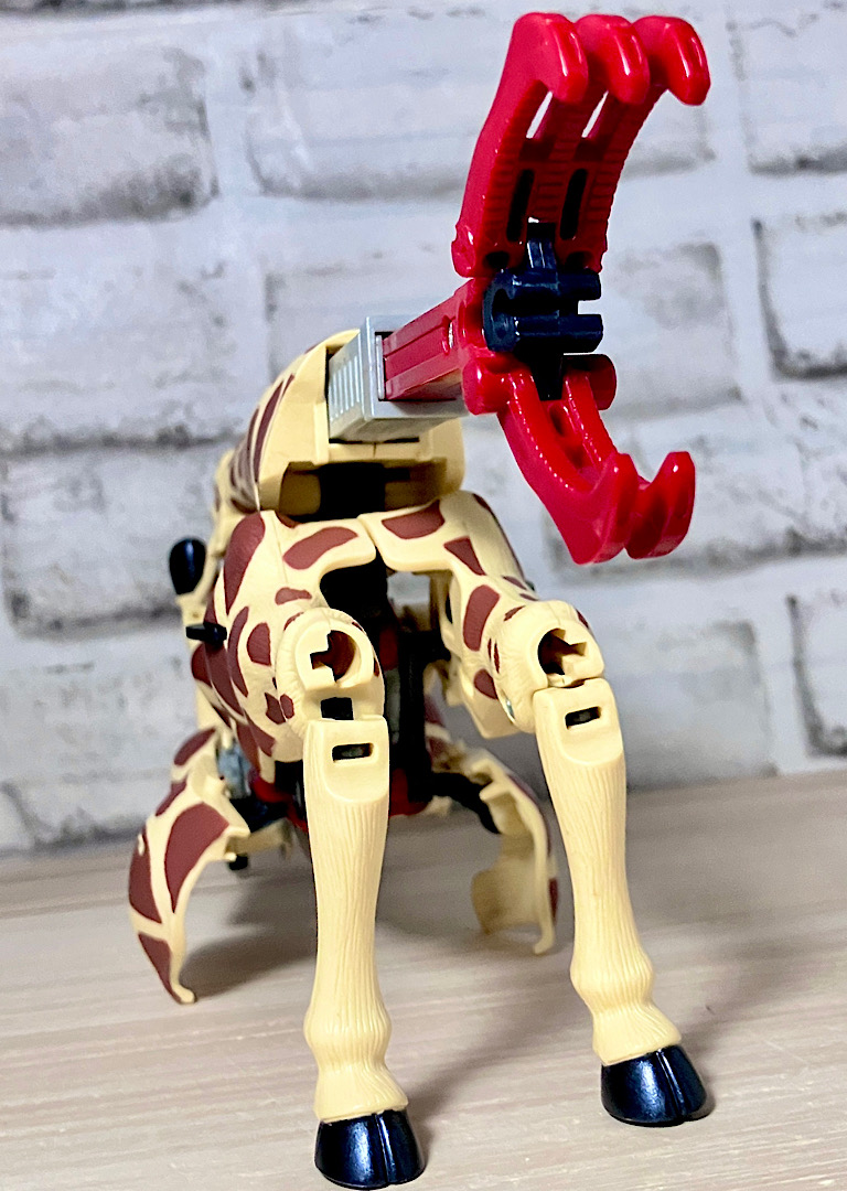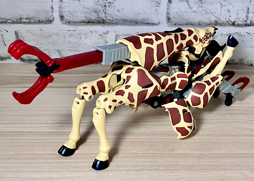 キリンというまさかのモチーフとギミックてんこ盛りのボディが魅力。変形もそんなに難しくなくて、程よい佳作だと思います。