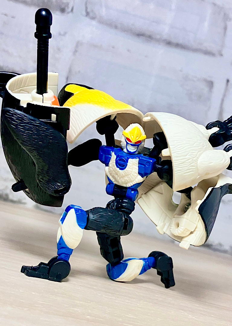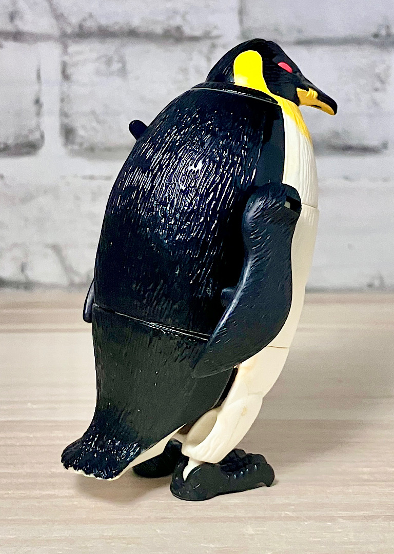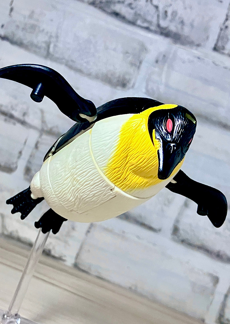 【ビーストモード】コウテイペンギンに変形する熱血少年兵。丸々と太った素晴らしい造形で、鋭い眼光により可愛くなりすぎないように工夫されています。頭は回転できますが、上を向けられれば最高だったなぁ。