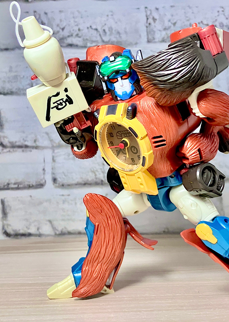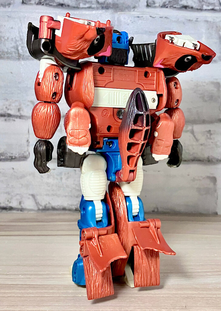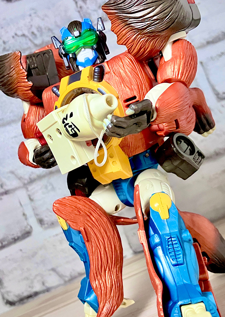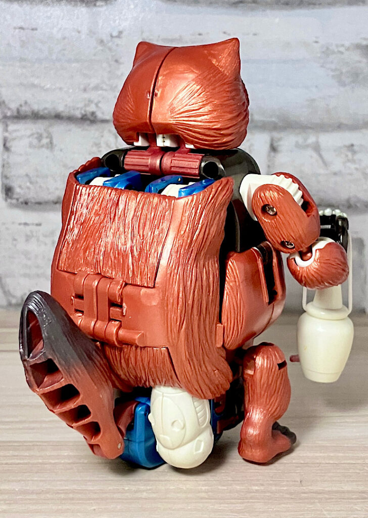 【ビーストモード】タヌキに変形。のんびり屋で役立たずと思いきや、時間停止というチート能力を持つ強者。実はマザーコンピューターベクターシグマに使える副官でした。ところで頭が2つに割れる変形なのにちゃんと左右に頭部を回せるのが何気にスゴイ。