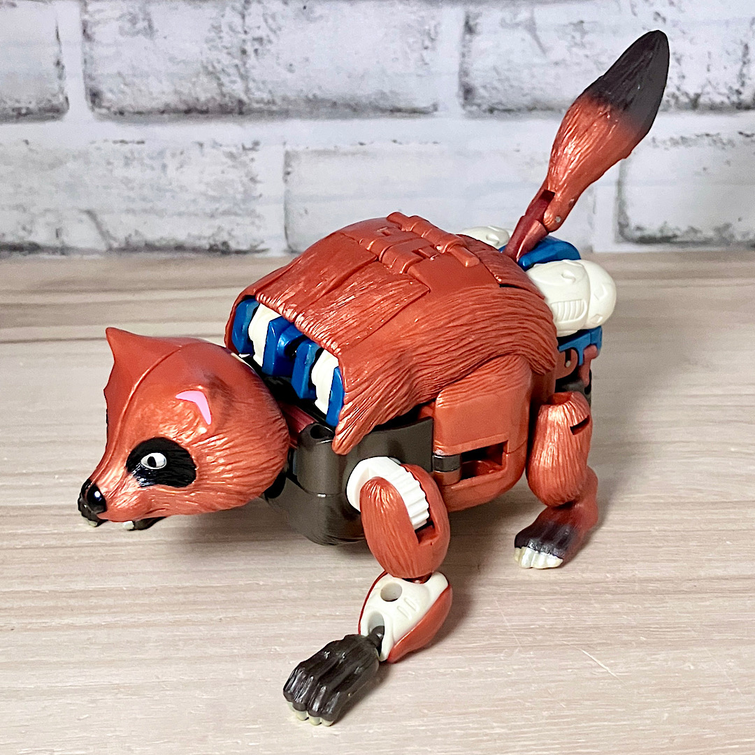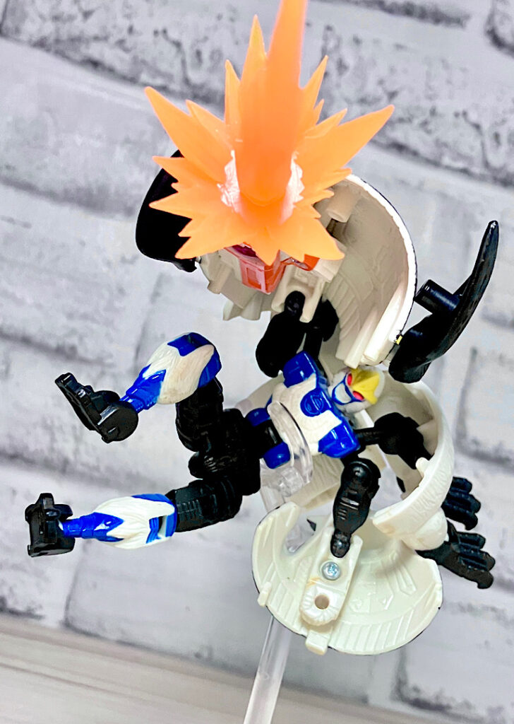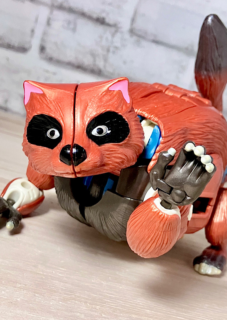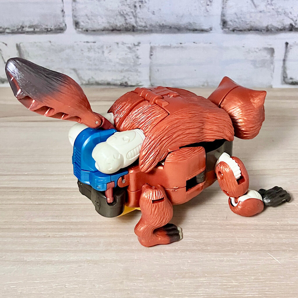 【ビーストモード】タヌキに変形。のんびり屋で役立たずと思いきや、時間停止というチート能力を持つ強者。実はマザーコンピューターベクターシグマに使える副官でした。ところで頭が2つに割れる変形なのにちゃんと左右に頭部を回せるのが何気にスゴイ。
