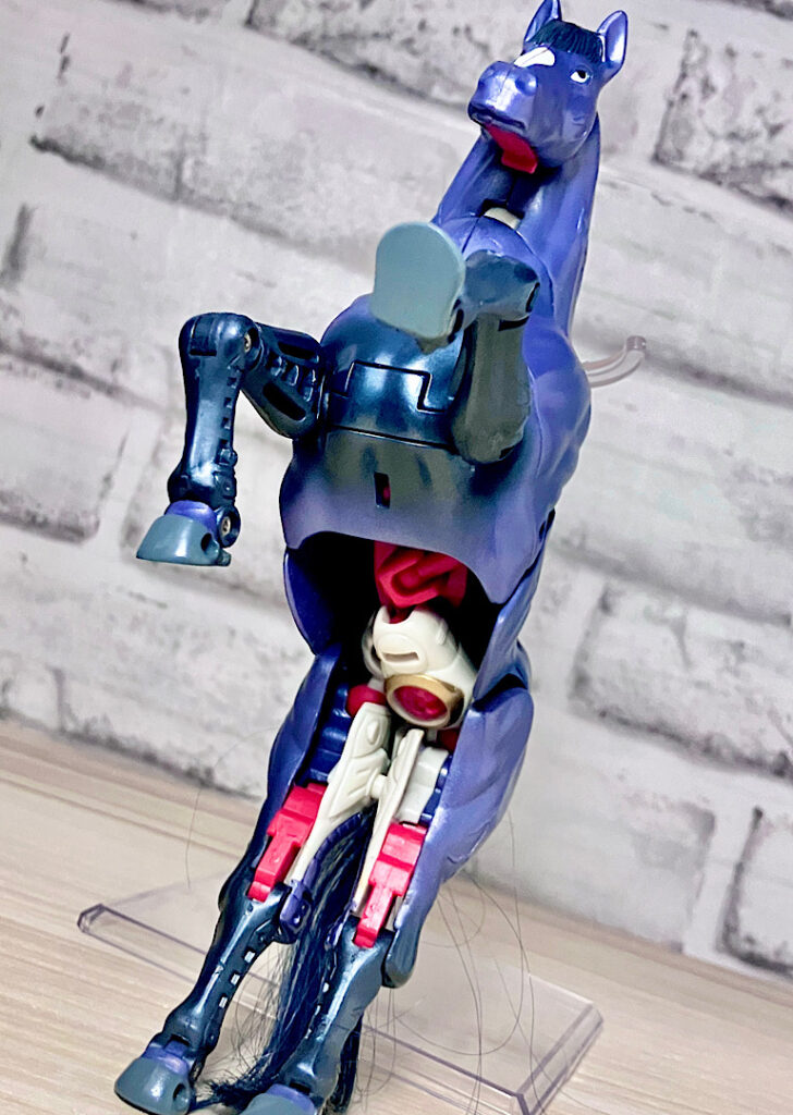 【ビーストモード】これまたこういう男の子向けロボット玩具には珍しい普通の馬に変形。サイバトロンの追加戦士で、全滅してしまったサラブレッド部隊の副官でした。性格はお調子者。