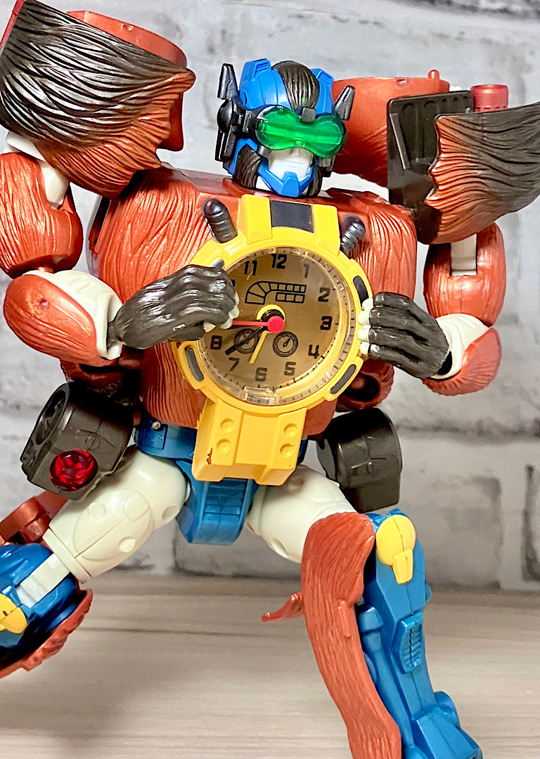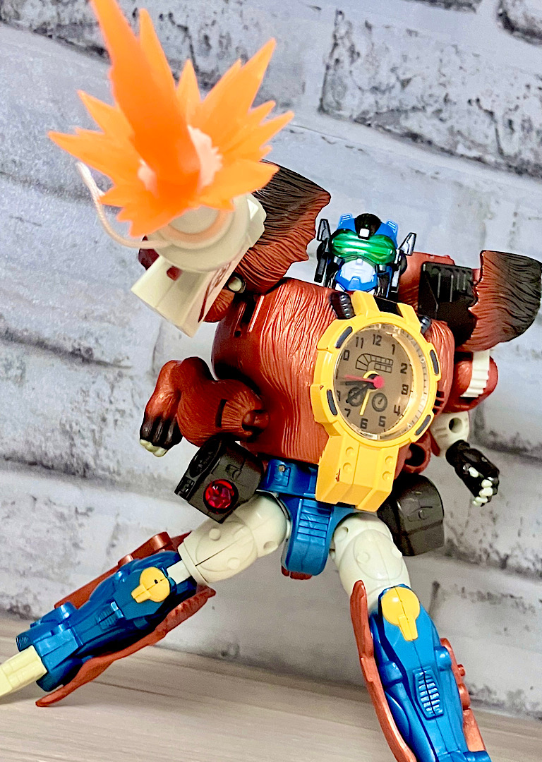 本当はミサイルがあるんですが見当たらなくなっちゃったのでエフェクトで代用。ボディは重くてバランス悪いし可動も狭めなんですが、とにかくその存在感が全てのアイテムですね。ボイジャーあたりでの時計無しリメイクが待たれるところです。